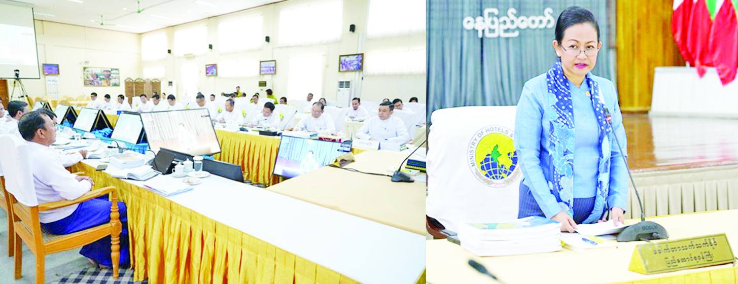 ယင်းနောက် နေပြည်တော်ကောင်စီအပါအဝင် တိုင်းဒေသကြီးနှင့် ပြည်နယ်ရုံးများမှ ညွှန်ကြားရေးမှူးများ၊ ဒုတိယညွှန်ကြားရေးမှူးများက ခရီးစဉ်ဒေသဖွံ့ဖြိုးတိုးတက်ရေးအတွက် ဆောင်ရွက်မှုအခြေအနေများ၊ ခရီးစဉ်ဒေသများသို့ ပြည်တွင်း/ပြည်ပခရီးသွား ဧည့်သည်များ ဝင်ရောက်မှုအခြေအနေများ၊ ခရီးသွားလုပ်ငန်းအမျိုးအစားအလိုက် အကောင်အထည်ဖော်ဆောင်ရွက်မှုအခြေအနေများ၊ ခရီးစဉ်ဒေသအသစ်များ ဖော်ထုတ်ဆောင်ရွက်လျက်ရှိမှု အခြေအနေများ၊ လာမည့်ခရီးသွားရာသီကာလအတွင်း ခရီးသွားများသွားလာလည်ပတ်မှု အဆင်ပြေစေရေးအတွက် ကြိုတင်ပြင်ဆင်ဆောင်ရွက်ထားရှိမှုနှင့် မြှင့်တင်ကြော်ငြာ ဆောင်ရွက်မှုအခြေအနေများနှင့် ဆက်လက်ဆောင်ရွက်သွားမည့် အစီအမံများကို ရှင်းလင်းတင်ပြကြသည်။