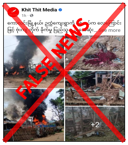 အဆိုပါ သတင်းနှင့်ပတ်သက်၍ ဒေသခံပြည်သူတစ်ဦးနှင့် လုံခြုံရေးတာဝန်ရှိသူတစ်ဦး၏ ပြောကြားချက်အရ အဆိုပါသတင်းမှာ သတင်းမှားသာဖြစ်ပြီး မှန်ကန်မှုမရှိကြောင်း၊ အကြမ်းဖက်သမားများ၏ လူမဆန်သည့်လုပ်ရပ်များကြောင့် အားပေးထောက်ခံမှုမရှိတော့သည့် ကျေးရွာများအား အကြမ်းဖက်သမားများက အကြောက်တရားများ လွှမ်းမိုးလာစေရန် လက်နက်ကြီးများ၊ Drone များဖြင့် ပစ်ခတ်တိုက်ခိုက်ခဲ့သဖြင့် အရပ်သားပြည်သူအချို့ ထိခိုက်သေဆုံးခဲ့ရပြီး နေအိမ်များ မီးလောင်ပျက်စီးခဲ့ရကြောင်း၊ ထိုသို့လုပ်ဆောင်နေသည့် အကြမ်းဖက်သမားများအား တပ်မတော်က ထိရောက်စွာတိုက်ခိုက်ချေမှုန်းလျက်ရှိကြောင်းနှင့် အကြမ်းဖက်အားပေး ပြည်ဖျက်မီဒီယာများက တပ်မတော်နှင့် ပြည်သူအကြား သပ်လျှိုသွေးခွဲရန်နှင့် အကြမ်းဖက်သမားများ၏ လုပ်ရပ်များကို ဖုံးကွယ်ပေးရန်အတွက် ယခုကဲ့သို့မဟုတ်မမှန်သည့် သတင်းမှားများဖြင့် လှုံ့ဆော်ဝါဒဖြန့်နေခြင်းသာဖြစ်ကြောင်း သိရှိရသည်။
