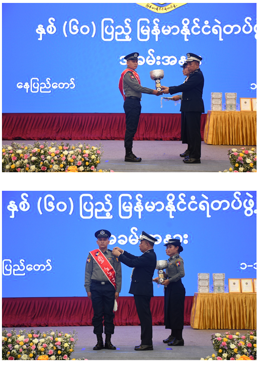 ယင်းနောက် ဒုတိယရဲချုပ်(၁) ရဲဗိုလ်ချုပ်တင်ကိုကိုက စွမ်းရည်သတ္တိအတွက် ရာထူးအဆင့်တိုး ဆုရရှိသူ အခြားအဆင့်(၅)ဦး၊ စွမ်းဆောင်မှုအတွက်ရာထူးအဆင့်တိုးဆုရရှိသူ အခြားအဆင့်(၅)ဦး၊ ဒုတိယရဲချုပ်(၂) ရဲဗိုလ်ချုပ်အောင်နိုင်သူက ရုံးဝန်ထမ်းထူးချွန်ဆုရရှိသူ တပ်ဖွဲ့ဝင်(၇)ဦးနှင့် ဝတ်စားဆင်ယင်မှုအကောင်းဆုံးဆုရ တပ်ဖွဲ့ဝင်(၄)ဦး၊ အမျိုးသမီးစွမ်းဆောင်ရှင်ဆုနှင့် နေအိမ်လိုင်းခန်းသန့်ရှင်းရေးဆုရရှိသူများအား တာဝန်ရှိသူများက ဂုဏ်ပြုဆုတံဆိပ်များနှင့် အမှတ်တရလက်ဆောင်ပစ္စည်းများ အသီးသီးပေးအပ်ချီးမြှင့်ခဲ့ကြသည်။