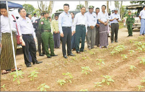 ဦးစွာ နိုင်ငံတော်စီမံအုပ်ချုပ်ရေးကောင်စီအဖွဲ့ဝင်နှင့်အဖွဲ့သည် မြန်အောင်ခရိုင် အင်္ဂပူမြို့နယ် အောက်စုကျေးရွာရှိ တောင်သူဦးတင်ထွန်း၏ မိုးစပါးရေကြီး နစ်မြုပ်ဧရိယာ စိုက်ဧက ၂ ဒသမ ၅၀ ဧက တွင် ဗျော့ထွန်းစပါးမျိုးအား ကောက်စိုက်သမများဖြင့် စိုက်ပျိုးနေမှုကိုလည်းကောင်း၊ မြန်အောင်မြို့နယ် ကညင်ငူကျေးရွာရှိ တောင်သူဦးအောင်စိုး၏ ယာမြေတွင် ဆင်းရွှေကြာ-၂ နေကြာမျိုးစေ့ထုတ် ငါးဧကစိုက်ပျိုးပွဲကိုလည်းကောင်း၊ မြန်အောင်မြို့နယ် ကဇွန်းခုံ ကျေးရွာအုပ်စုရှိ ဆီထွက်သီးနှံအထူးဇုန် မြေပဲ၊ နှမ်း၊ နေကြာဧက ၃၅၀ စိုက်ခင်းရှိ တောင်သူဦးမိုးကျော်သူ၏ မိုးနေကြာ (ဆင်းရွှေကြာ-၂)နှင့် မိုးမြေပဲ (မကွေး-၁၂)စိုက်ခင်း၊ တောင်သူဦးအေးလင်း၏ မိုးနေကြာ (ဆင်းရွှေကြာ-၂) စိုက်ခင်း၊ တောင်သူ ဦးမြင့်အောင်၏ မိုးနှမ်း (စမုန် နက်)စိုက်ခင်းတွင် ပေါင်းလိုက်ခြင်း၊ သမန်း နှိုးခြင်း ဆောင်ရွက်နေမှုများကိုလည်းကောင်း ကြည့်ရှုအားပေးသည်။