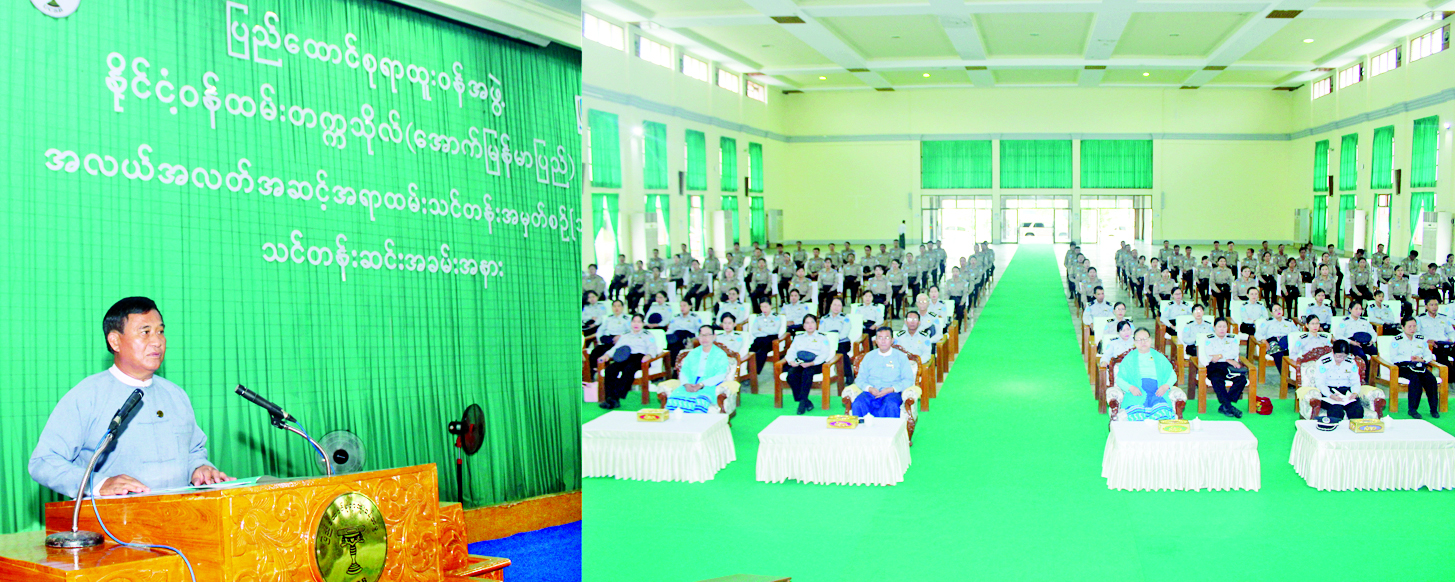 အလယ်အလတ်အဆင့် အရာထမ်းသင်တန်းအမှတ်စဉ်(၁၁)သင်တန်းဆင်းပွဲကို ယနေ့နံနက် ၈ နာရီတွင် ရတနာသိင်္ဃခန်းမ၌ကျင်းပရာ ပြည်ထောင်စုရာထူးဝန်အဖွဲ့ အဖွဲ့ဝင် သူရဦးဘိုနီ၊ နိုင်ငံ့ဝန်ထမ်းတက္ကသိုလ် (အောက်မြန်မာပြည်) မှ ပါမောက္ခချုပ်နှင့် တာဝန်ရှိသူများ သင်တန်းသားသင်တန်းသူများ တက်ရောက်ကြသည်။