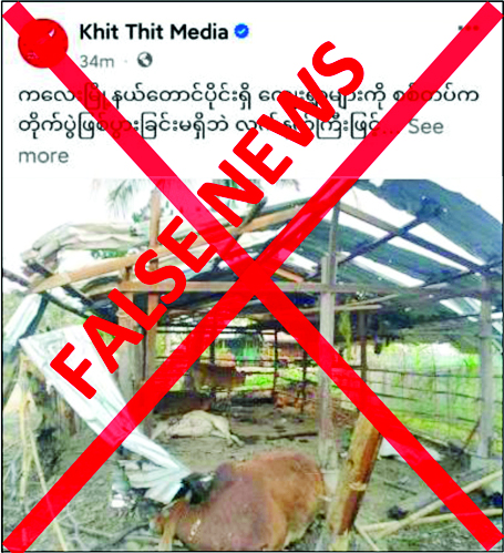 စစ်ကိုင်းတိုင်းဒေသကြီး ကလေးမြို့နယ်တွင် အောက်တိုဘာ ၁ ရက်က တင်သားကျေးရွာ၊ ကျောက်ဖူးကျေးရွာ၊ ဒိုးနွယ်ကျေးရွာနှင့် အရှေ့စီးကျေးရွာတို့တွင် တိုက်ပွဲဖြစ်ပွားခြင်းမရှိဘဲ လုံခြုံရေးတပ်ဖွဲ့ဝင်များက လက်နက်ကြီးများ ပစ်ခတ်ခဲ့ကြောင်းနှင့် အဆိုပါပစ်ခတ်မှုကြောင့် ပြည်သူခြောက်ဦး ထိခိုက်ဒဏ်ရာများရရှိခဲ့သည်ဟု တစ်ဖက်သတ်စွပ်စွဲရေးသားထားသည့် သတင်းတု၊ သတင်းအမှားများကို တရားမဝင်ပြည်ဖျက်မီဒီယာများက လှုံ့ဆော်ဝါဒဖြန့်ဝေနေသည်ကိုတွေ့ရှိရသည်။
