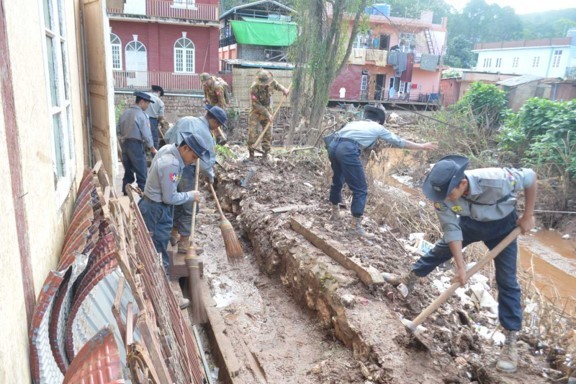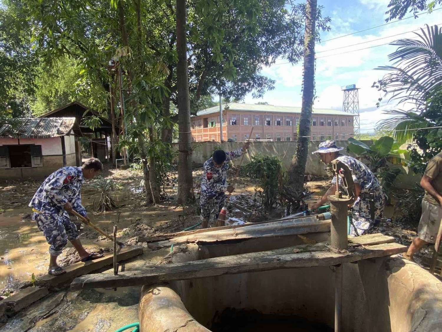 နေပြည်တော်ကောင်စီနယ်မြေအပါအဝင် တိုင်းဒေသကြီးနှင့်ပြည်နယ်များရှိ ရေကြီးရေလျှံမှု ဖြစ်ပေါ်ခဲ့သည့် ရပ်ကွက်/ကျေးရွာများတွင် ကူညီကယ်ဆယ်ရေးလုပ်ငန်းများနှင့် ပြန်လည်ထူထောင်ရေးလုပ်ငန်းများကို အင်တိုက်အားတိုက် တက်ကြွစွာပူးပေါင်းဆောင်ရွက်ပေးလျက်ရှိရာ ယနေ့တွင်လည်း နေပြည်တော်ကောင်စီ နယ်မြေအတွင်းတွင်လည်းကောင်း၊ ရှမ်းပြည်နယ် (တောင်ပိုင်း)၊ ကလောမြို့နယ်တွင်လည်းကောင်း၊ ကယားပြည်နယ်၊ လွိုင်ကော်မြို့နယ်တွင်လည်းကောင်း ဘုန်းတော်ကြီးကျောင်းများ၊ စာသင်ကျောင်းများ၊ ဆေးရုံ၊ ဆေးခန်းများ၊ ဌာနဆိုင်ရာ အဆောက်အဦများတွင် လိုအပ်သည်များ ကူညီရွှေ့ပြောင်းပေးခြင်းနှင့် သန့်ရှင်းရေးလုပ်ငန်းများ ဆောင်ရွက်ပေးခြင်း၊ လမ်း၊ တံတားများ၊ ရပ်ကွက်၊ ကျေးရွာများအတွင်း၌ တင်ကျန်ခဲ့သည့် နုန်းများ၊ သစ်ပင်သစ်ကိုင်းများဖယ်ရှားပေးခြင်း အပါအဝင်အခြား လိုအပ်သည်များကို တပ်မတော်သားများ၊ မြန်မာနိုင်ငံရဲတပ်ဖွဲ့ဝင်များ၊ မီးသတ်တပ်ဖွဲ့ဝင်များ၊ ကြက်ခြေနီတပ်ဖွဲ့ဝင်များနှင့် လူမှုဝန်ထမ်းကယ်ဆယ်ရေးအဖွဲ့များက ဒေသခံပြည်သူများနှင့် ပူးပေါင်း၍တက်ကြွစွာ ဆောင်ရွက်ပေးလျက်ရှိသည်။
