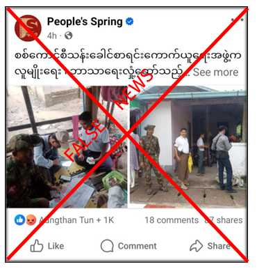 နိုင်ငံတော်စီမံအုပ်ချုပ်ရေးကောင်စီ၏ ဝန်ထမ်းများက သန်းခေါင်စာရင်းလာကောက်စဉ် လူမျိုးရေး၊ ဘာသာရေးလှုံ့ဆော်သည့် စကားများပြောကြောင်း တရားမဝင် ပြည်ဖျက်မီဒီယာများက သတင်းအမှားများ မဟုတ်မမှန်ရေးသားဖြန့်ဝေလျက်ရှိကြောင်း တွေ့ရှိရသည်။