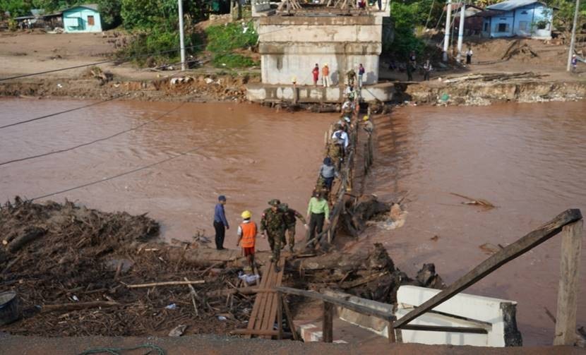 ပျက်စီးသွားခဲ့သည့် တံတားအပေါ်တွင် ပေ ၁၅၀ အရှည်ရှိ နှစ်လွှာတစ်ထပ်ဘေလီတံတားအား ဒေသခံပြည်သူများ အဆင်ပြေလွယ်ကူစွာ သွားလာနိုင်ရေးအတွက် တံတားဦးစီးဌာန၊ တံတားအထူးအဖွဲ့ ၁၂ က တာဝန်ယူဆောင်ရွက်ပေးလျက်ရှိပြီး အောက်တိုဘာလ ဒုတိယပတ်ကုန်အပြီးတွင် အမြန်ဆုံးပြီးစီးနိုင်ရေး နေ့/ည မပြတ် ဆောင်ရွက်လျက်ရှိသည်။