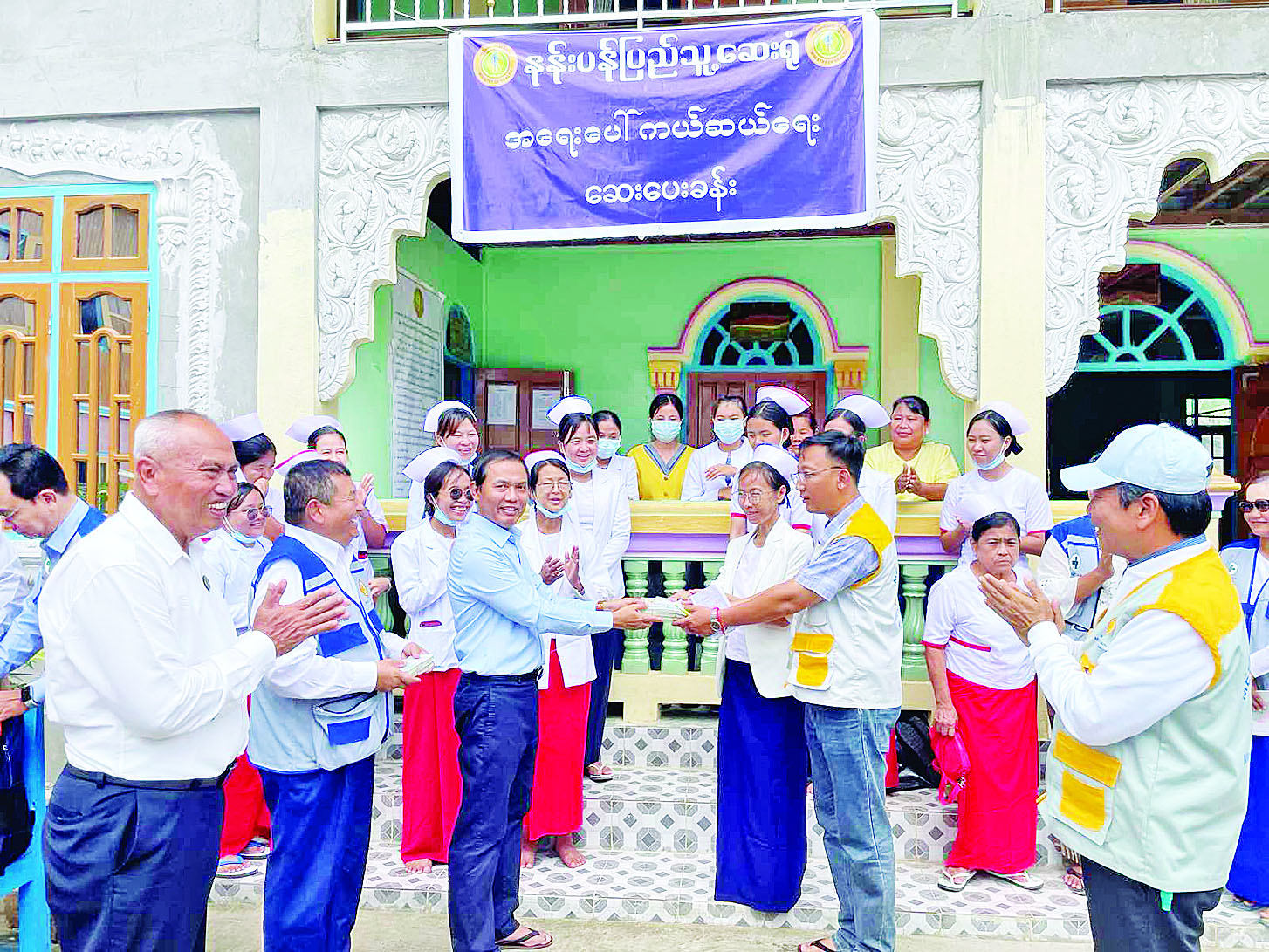 မွန်းလွဲပိုင်းတွင် ညောင်ရွှေမြို့ ရွှေရေကျဘုန်းတော်ကြီးကျောင်း၌ စဝ်စံထွန်းပြည်သူ့ဆေးရုံကြီးနှင့် အမျိုးသမီးနှင့် ကလေးဆေးရုံကြီး၊ တောင်ကြီးမြို့တို့မှ သမားတော်၊ စိတ်ကျန်းမာ၊ ကလေး၊ သားဖွားမီးယပ်အထူးကုဆရာဝန်များ ပါဝင်သောအဖွဲ့မှ အထူးကုကွင်းဆင်းကုသနေမှုများကို ကြည့်ရှု အားပေးသည်။