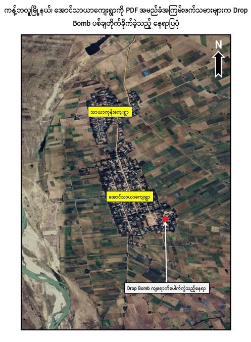 PDF အမည်ခံအကြမ်းဖက်သမားများသည် ပြည်သူလူထုအေးချမ်းစွာ နေထိုင်နေသော မြို့၊ ရွာများကို တည်ငြိမ်အေးချမ်းမှုပျက်ပြားစေရန် ရည်ရွယ်ချက်ဖြင့် Drop Bomb များ၊ လက်နက်ကြီးများဖြင့် ရက်စက်ယုတ်မာစွာ ပစ်ခတ်တိုက်ခိုက်မှုများကြောင့် အပြစ်မဲ့ပြည်သူများ သေဆုံး၊ ဒဏ်ရာရရှိမှုများဖြစ်ပေါ်လျက်ရှိပြီး ယနေ့တွင်လည်း စစ်ကိုင်းတိုင်းဒေသကြီး၊ ကန့်ဘလူမြို့နယ်၊ အောင်သာယာကျေးရွာကို Drop Bomb များဖြင့် ယုတ်မာရက်စက်စွာ ပစ်ချတိုက်ခိုက်ခဲ့သဖြင့် အပြစ်မဲ့ပြည်သူ ၃ ဦးသေဆုံးပြီး ၈ ဦး ဒဏ်ရာများ ရရှိခဲ့ကြောင်း သိရှိရသည်။
