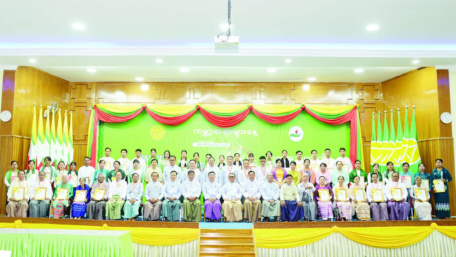 ၂၀၂၄ ခုနှစ် ကမ္ဘာ့ဆရာများနေ့အထိမ်းအမှတ်အခမ်းအနားကို ယနေ့နံနက်ပိုင်းက နေပြည်တော်ရှိ ပညာရေးဝန်ကြီးဌာန၌ ကျင်းပသည်။