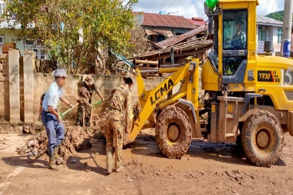 နေပြည်တော်ကောင်စီနယ်မြေအပါအဝင် တိုင်းဒေသကြီးနှင့် ပြည်နယ်များရှိ ရေကြီးရေလျှံမှုဖြစ်ပေါ်ခဲ့သည့် ရပ်ကွက်/ကျေးရွာများတွင် ကူညီကယ်ဆယ်ရေးလုပ်ငန်းများနှင့် ပြန်လည်ထူထောင်ရေးလုပ်ငန်းများကို အင်တိုက်အားတိုက်တက်ကြွစွာ ပူးပေါင်းဆောင်ရွက်ပေးလျက်ရှိရာ ယနေ့တွင်လည်း နေပြည်တော်ကောင်စီနယ်မြေတွင်လည်းကောင်း၊ ရှမ်းပြည်နယ်(တောင်ပိုင်း)၊ ကလောမြို့နယ်တွင်လည်းကောင်း စာသင်ကျောင်းများ၊ ဆေးရုံ၊ ဆေးခန်းများ၊ ဌာနဆိုင်ရာအဆောက်အဦများ၊ လမ်း၊ တံတားများ၊ ရပ်ကွက်၊ ကျေးရွာများအတွင်း၌ တင်ကျန်ခဲ့သည့်နုန်းများ၊ သစ်ပင်သစ်ကိုင်းများ ဖယ်ရှားပေးခြင်းအပါအဝင် အခြားလိုအပ်သည်များကို တပ်မတော်သားများ၊ မြန်မာနိုင်ငံရဲတပ်ဖွဲ့ဝင်များ၊ မီးသတ်တပ်ဖွဲ့ဝင်များ၊ ကြက်ခြေနီတပ်ဖွဲ့ဝင်များနှင့် လူမှုဝန်ထမ်းကယ်ဆယ်ရေးအဖွဲ့များက ဒေသခံပြည်သူများနှင့်ပူးပေါင်း၍ တက်ကြွစွာဆောင်ရွက်ပေးလျက်ရှိသည်။