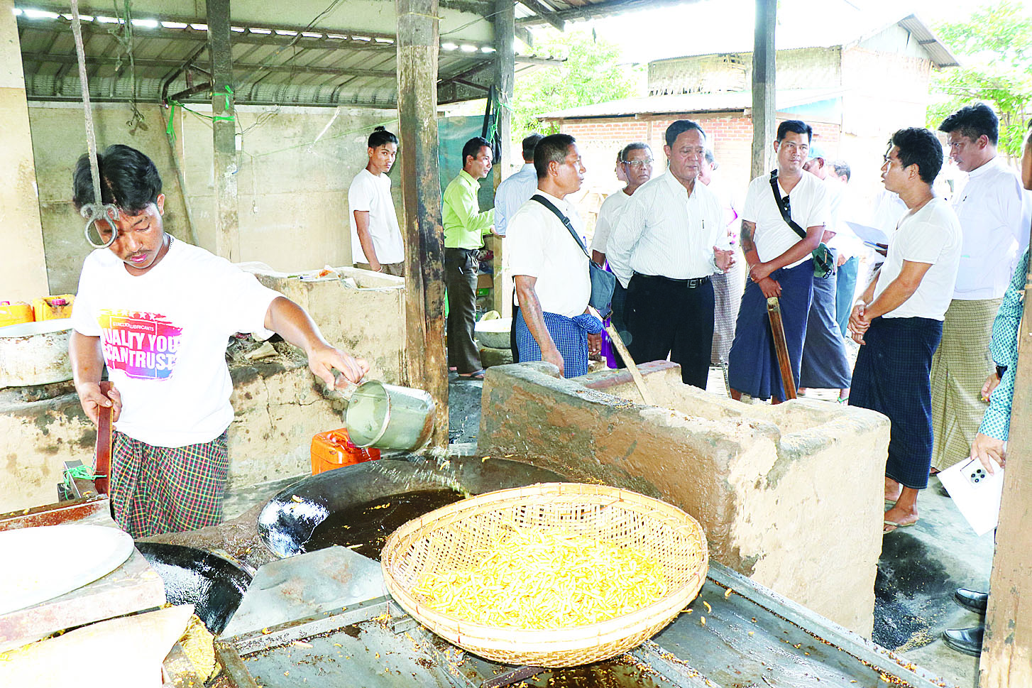အသက်မွေးဝမ်းကျောင်းလုပ်ငန်းများ ပြန်လည်ထူထောင်ရေးလုပ်ငန်းကော်မတီဥက္ကဋ္ဌ၊ သမဝါယမနှင့်ကျေးလက်ဖွံ့ဖြိုးရေးဝန်ကြီးဌာန ပြည်ထောင်စုဝန်ကြီးဦးလှမိုးသည် တာဝန်ရှိသူများနှင့်အတူ ယနေ့မွန်းလွဲပိုင်းက ပျဉ်းမနားမြို့နယ်၊ ကျွန်းဦးခေတ်မီစံပြကျေးရွာသို့ရောက်ရှိပြီး ရေကြီးရေလျှံရေတိုက်စားမှုများကြောင့် ပျက်စီးဆုံးရှုံးခဲ့ရသည့် ပဲလှော်ဖိုလုပ်ငန်းရှင်များ၊ ကျေးရွာနေပြည်သူများ၏လုပ်ငန်းများ အမြန်ဆုံးပြန်လည် လည်ပတ်နိုင်ရေးအတွက် သမဝါယမဦးစီးဌာနမှ သက်သာသောအတိုးနှုန်းဖြင့် ထုတ်ချေးသည့်ချေးငွေဖြင့် ပဲလှော်ဖိုများပြင်ဆင်ခြင်း၊ အသစ်တည်ထောင်ခြင်း၊ ကုန်ကြမ်းများဝယ်ယူခြင်းနှင့် လုပ်ငန်းများစတင်လည်ပတ်နေမှုကို လှည့်လည်ကြည့်ရှုစစ်ဆေးသည်။