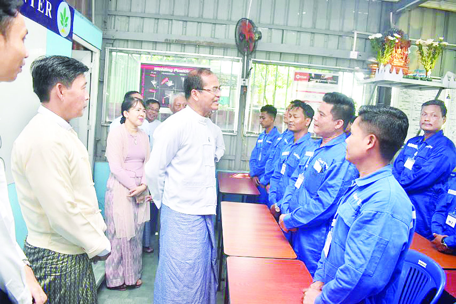 အလုပ်သမားဝန်ကြီးဌာန ဒုတိယဝန်ကြီးဦးဝင်းရှိန်သည် တာဝန်ရှိသူများနှင့်အတူ ယနေ့မွန်းလွဲပိုင်းတွင် ရန်ကုန်တိုင်းဒေသကြီး ဒဂုံမြို့သစ်တောင်ပိုင်းမြို့နယ်ရှိ Good Things Assessment Cen-ter ကို သွားရောက်ကြည့်ရှု စစ်ဆေးသည်။