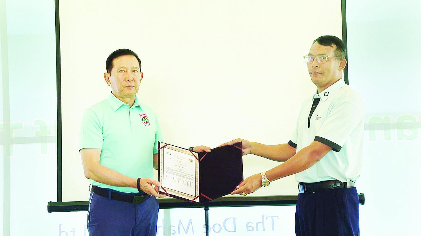 ထို့နောက် City Golf Club နှင့် Royal Myanmar Golf Club တို့မှ တာဝန်ရှိသူများက ကျေးဇူးတင်စကား ပြန်လည်ပြောကြားပြီး မြန်မာနိုင်ငံဂေါက်သီးအားကစားအဖွဲ့ချုပ် ဒုတိယဥက္ကဋ္ဌက Course Rating အစီရင်ခံစာကို Royal Myanmar Golf Club နှင့် City Golf Club တို့မှ တာဝန်ရှိသူများထံ လွှဲပြောင်းပေးအပ်သည်။