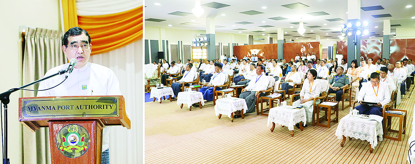 ပို့ဆောင်ရေးနှင့်ဆက်သွယ်ရေးဝန်ကြီးဌာန မြန်မာ့ဆိပ်ကမ်းအာဏာပိုင်မှ ဦးဆောင်ပြုလုပ်သည့် ဆိပ်ကမ်းလုပ်ငန်းများ စွမ်းဆောင်ရည်မြှင့်တင်ရေး အလုပ်ရုံဆွေးနွေးပွဲကို ယမန်နေ့ နံနက်ပိုင်းတွင် ရန်ကုန်မြို့ မင်္ဂလာတောင်ညွန့်မြို့နယ် စက်ဆန်းဝန်ထမ်းမိသားစုအိမ်ရာရှိ သီရိအဏ္ဏဝါခန်းမ၌ ကျင်းပသည်။