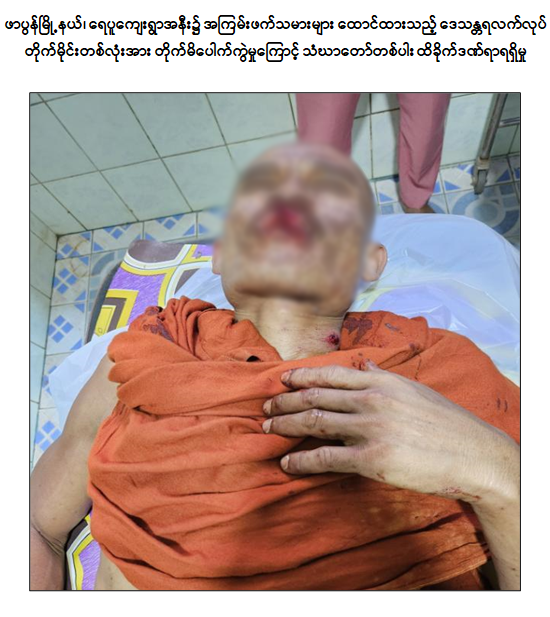 ကရင်ပြည်နယ်၊ ဖာပွန်မြို့နယ်၊ ကျွန်းတောကျေးရွာ ဘုန်းတော်ကြီးကျောင်းတွင် သီတင်းသုံးလျက်ရှိသည့် သံဃာတော်တစ်ပါးသည် အကြမ်းဖက်သမားများထောင်ထားသည့် ဒေသန္တရလက်လုပ်တိုက်မိုင်းကြိုးအား တိုက်မိခဲ့ရာမှ ပေါက်ကွဲမှုဖြစ်ပွားပြီး ထိခိုက်ဒဏ်ရာများ ရရှိခဲ့ကြောင်း သိရှိရသည်။