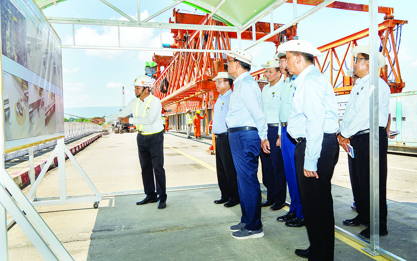 ထို့နောက် သဘာဝဘေးဒဏ်ကြောင့် ပျက်စီးခဲ့သော တံတားထိပ်ခုံနှင့် ချဉ်းကပ်လမ်းနေရာ ပြုပြင်ဆောင်ရွက်ပြီးစီးမှု၊ ကုန်တင်ယာဉ်များ စနစ်တကျဖြတ်သန်းသွားလာရန် ခွင့်ပြုထားမှုနှင့် အခိုင်အမာပြင်ဆင်တည်ဆောက်နေမှုအခြေအနေများကို လှည့်လည်ကြည့်ရှုစစ်ဆေးပြီး ရေရှည်တည်တံ့ခိုင်မြဲရေး စနစ်တကျတွက်ချက်ဆောင်ရွက်သွားရန်၊ ယခင်မူလအခြေအနေထက် ပိုမိုကောင်းမွန်စေရန်နှင့် ခရီးသည်ယာဉ်၊ ကုန်တင်ယာဉ်ကြီးများ အန္တရာယ်ကင်းစွာ မောင်းနှင်အသုံးပြုနိုင်ရေး ထည့်သွင်းစဉ်းစားဆောင်ရွက်သွားရန် မှာကြားသည်။