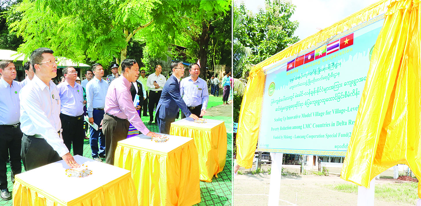 မြစ်ဝကျွန်းပေါ်ဒေသတွင် မဲခေါင်-လန်ချန်းနိုင်ငံများအကြား ကျေးရွာအဆင့် ဆင်းရဲမှုလျှော့ချရေးဆိုင်ရာ စံပြကျေးရွာထူထောင်ခြင်းစီမံကိန်း မိတ်ဆက်ပွဲအခမ်းအနားကို ယနေ့နံနက်ပိုင်းက ဧရာဝတီတိုင်းဒေသကြီး ညောင်တုန်းမြို့နယ် အုန်းပင်စုကျေးရွာ၌ ကျင်းပသည်။