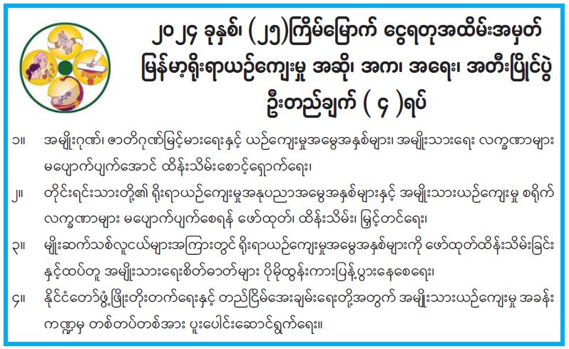 ၂၀၂၄ ခုနှစ်၊ (၂၅) ကြိမ်မြောက် ငွေရတုအထိမ်းအမှတ် မြန်မာ့ရိုးရာယဉ်ကျေးမှု အဆို၊ အက၊ အရေး၊ အတီးပြိုင်ပွဲ ဦးတည်ချက် (၄) ရပ် 10/14/2024