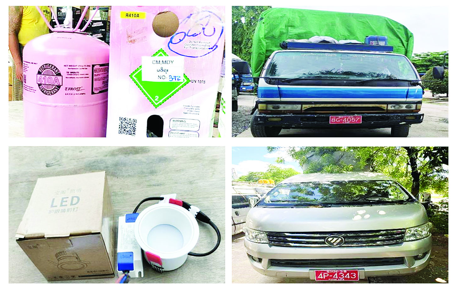 အောက်တိုဘာ ၁၁ ရက်တွင် ကချင်ပြည်နယ် တရားမဝင်ကုန်သွယ်မှုတိုက်ဖျက်ရေး အထူးအဖွဲ့၏ စီမံခန့်ခွဲမှုဖြင့် တာဝန်ကျပူးပေါင်းအဖွဲ့က စစ်ဆေးမှုများဆောင်ရွက်ခဲ့ရာ ဝိုင်းမော်မြို့နယ် ဗလမင်းထင်တံတားပူးပေါင်းစစ်ဆေးရေးဂိတ်အနီး၌ မော်တော်ယာဉ်ကိုးစီးပေါ်မှ တရားဝင်စာရွက် စာတမ်းအထောက်အထား တင်ပြနိုင်ခြင်းမရှိသည့် လုပ်ငန်းသုံးပစ္စည်းလေးမျိုး၊ လူသုံးကုန်ပစ္စည်း တစ်မျိုး (ခန့်မှန်းတန်ဖိုးငွေကျပ် ၁၄၇၀၀၀၀၀၀)နှင့် အဆိုပါပစ္စည်းများ တင်ဆောင်လာသည့် Dong Feng Truck ရှစ်စီးနှင့် Cheng Long Truck တစ်စီး (ခန့်မှန်းတန်ဖိုးငွေကျပ် ၃၁၅၀၀၀၀၀၀) စုစုပေါင်း ခန့်မှန်းတန်ဖိုးငွေကျပ် ၄၆၂၀၀၀၀၀၀ ကို ဖမ်းဆီးရမိခဲ့ပြီး အကောက်ခွန်လုပ်ထုံးလုပ်နည်းများနှင့်အညီ အရေးယူဆောင်ရွက်လျက်ရှိသည်။