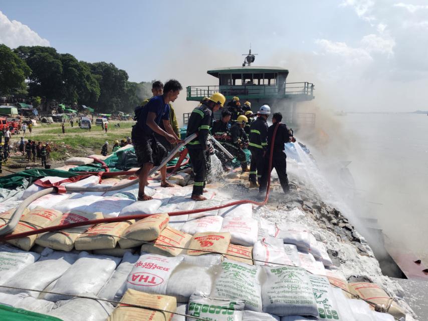 မန္တလေးတိုင်းဒေသကြီး၊ မဟာအောင်မြေမြို့နယ်၊ စိန်ပန်းရပ်ကွက်၊ ၃၇×၃၈ လမ်းကြား ကမ်းနားလမ်းရှိ ဂေါဝိန်ဆိပ်ကမ်း၌ ဆိုက်ကပ်ထားသော ရာဇသိင်္ခသင်္ဘောသည် ယနေ့ နေ့လယ်ပိုင်းက မီးလောင်မှုဖြစ်ပွားကြောင်း မြို့နယ်မီးသတ်ဦးစီးဌာနမှ သိရှိရသည်။