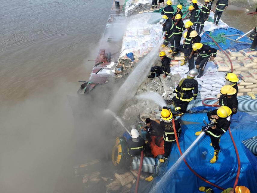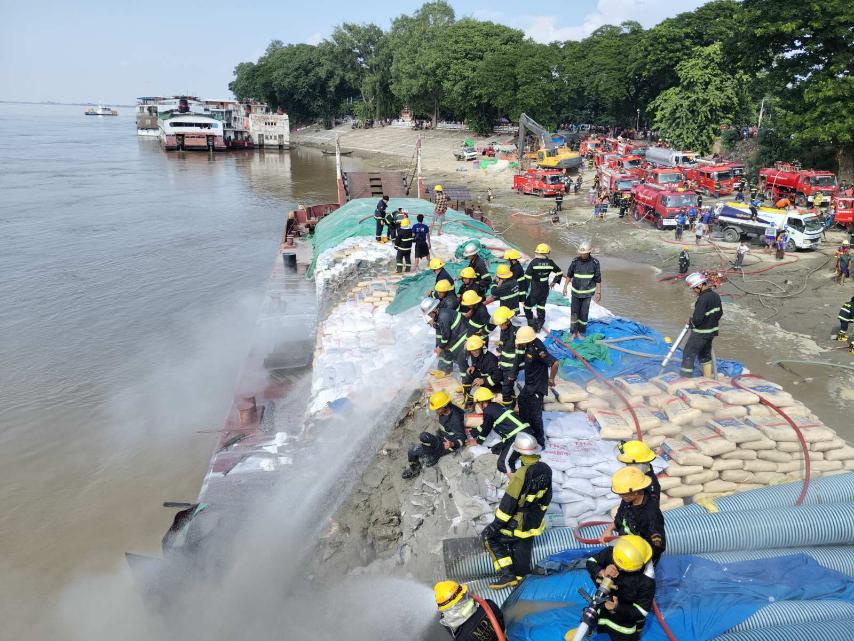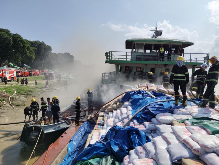 ဖြစ်စဉ်မှာ မဟာအောင်မြေမြို့နယ်၊ စိန်ပန်းရပ်ကွက်၊ ၃၇× ၃၈ လမ်းကြား ကမ်းနားလမ်းရှိ ဂေါဝိန်ဆိပ်ကမ်း၌ ဆိုက်ကပ်ထားသော ရာဇသိင်္ခသင်္ဘော ( ဗန်းမော်- မန္တလေး)တွင် ယနေ့ နေ့လယ် ၁ နာရီ ၂၀ မိနစ်ခန့်က ဆီပီပါများထားရှိသည့် သင်္ဘောဝမ်းဗိုက်အား ဂဟေဆော်ရာမှ မီးလောင်ကျွမ်းမှု ဖြစ်ပွားခဲ့ခြင်းဖြစ်ပြီး မီးလောင်မှုဖြစ်ပွားရာသို့ တိုင်းဒေသကြီးမီးသတ်ဦးစီးဌာန ညွှန်ကြားရေးမှူး ဦးဇော်ဝင်းထွန်း ဦးဆောင်၍ သန္ဓေမီးသတ်တပ်ဖွဲ့ဝင် ၃၀ဦး ၊အရန်မီးသတ်တပ်ဖွဲ့ဝင် ၇၀ဦး စုစုပေါင်း ၁၀၀ဦး၊ အုပ်ချုပ်မှုယာဉ် ၃ စီး၊ မီးငြှိမ်းသတ်ယာဉ် ၁၀ စီး၊ ရေသယ်ယာဉ် ၅ စီး စုစုပေါင်း ၁၈စီး၊ Foam ဆေးရည် ၂၀၀ ဂါလံခန့်၊ ရေဂါလံ ၁၅၀၀၀ဂါလံခန့်ဖြင့် သွားရောက်၍ မီးငြှိမ်းသတ်ခဲ့ရာ ၃နာရီ၁၅ မိနစ်ခန့်တွင် မီးငြှိမ်းသတ်နိုင်ခဲ့သည်။