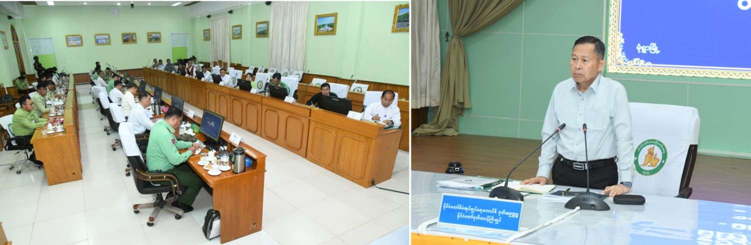 ဦးစွာ တိုင်းဒေသကြီးဝန်ကြီးချုပ်ဦးမြတ်ကျော်နှင့် တိုင်းဒေသကြီးအစိုးရအဖွဲ့ဝင် ဝန်ကြီးများက တိုင်းဒေသကြီးအတွင်းရှိ အုပ်ချုပ်ရေး၊ စီးပွားရေး၊ လူမှုရေးဆိုင်ရာကိစ္စရပ်များ၊ နိုင်ငံ့စီးပွားမြှင့်တင်ရေးရန်ပုံငွေမှ ဒေသတွင်းစိုက်ပျိုးမွေးမြူရေးနှင့် MSME လုပ်ငန်းများအတွက် ချေးငွေများထုတ်ချေးထားမှု၊ ပညာရေး၊ ကျန်းမာရေး စသည့်ကဏ္ဍအလိုက် ဒေသဆိုင်ရာ အချက်အလက်များ၊ နယ်မြေဒေသတည်ငြိမ်အေးချမ်းရေးနှင့် လုံခြုံရေးအတွက် ပြည်သူ့လုံခြုံရေးနှင့် အကြမ်းဖက်နှိမ်နင်းရေးအဖွဲ့များ ဖွဲ့စည်းထားရှိမှု၊ လူဦးရေနှင့်အိမ်အကြောင်းအရာ သန်းခေါင်စာရင်းကောက်ယူရေးလုပ်ငန်းများတွင် ဌာနဆိုင်ရာအဖွဲ့ဝင်များနှင့်အတူ ပူးပေါင်းပါဝင်ဆောင်ရွက်ပေးလျက်ရှိမှု၊ နယ်မြေဒေသတည်ငြိမ်အေးချမ်းရေးအတွက် လုံခြုံရေးဆိုင်ရာတာဝန်ရှိသူများ၊ ဌာနဆိုင်ရာတာဝန်ရှိသူများက အတူတကွဝိုင်းဝန်းဆောင်ရွက်လျက်ရှိမှု အခြေအနေများနှင့် အခြားဆောင်ရွက်နေမှုများကို သက်ဆိုင်ရာကဏ္ဍများအလိုက် ရှင်းလင်းတင်ပြသည်။