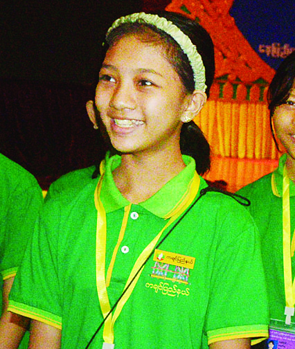 မနှစ်က ပြိုင်ပွဲမှာ တစ်ပင်တိုင် အကဝင်ပြိုင်ဖူးတယ်။ ဒါပေမယ့် ပြည်နယ်အဆင့်အထိပဲ ပါခဲ့တယ်။ ဒီနှစ်တော့ ကဗျာလွတ်အဖွဲ့ထဲမှာ ပါဝင်ယှဉ်ပြိုင်ခဲ့ပါတယ်။ ကျွန်မတို့ကို ဆရာမ ဒေါ်ခင်စန်းထွေးက သင်ကြားပေးတာဖြစ်ပြီး မြစ်ကြီးနားမြို့ လေ့ကျင့်ရေးအလယ်တန်း ကျောင်းကဖြစ်ပါတယ်။ ကျွန်မနဲ့ အတူတူ Grade 7 ၊ 8 ၊ 9 ကျောင်းသူ တွေလည်းပါပါတယ်။ ကျွန်မကတော့ Grade 7 က ဖြစ်ပါတယ်။ ကဗျာလွတ်အကဆိုတာ မြန်မာအကရဲ့ အခြေခံဖြစ်ပါတယ်။ သင်ယူစမှာတော့ တော်တော်လေး ခက်ခဲတယ်။ နောက်ပိုင်းသင်ရင်း လေ့ကျင့်ရင်း အချိုးကျလာတယ်။ နေပြည်တော်ကို အောက်တိုဘာ ၃ ရက်နေ့ကတည်းက ရောက်ခဲ့ပါတယ်။ အစပိုင်းမှာ ရာသီအပြောင်းအလဲ၊ ရေသုံးရတာ အဆင်မပြေ တာလေးတွေတော့ရှိတယ်။ ကျွန်မတို့ဆီနဲ့ ရာသီဥတုကလည်းမတူတော့ သိပ်အသားမကျဘူး။ အခုတော့ အားလုံးအဆင်ပြေသွားပါပြီ။ ပြိုင်ပွဲအတွက် အကောင်းဆုံးယှဉ်ပြိုင်သွားပါမယ်ရှင့်။