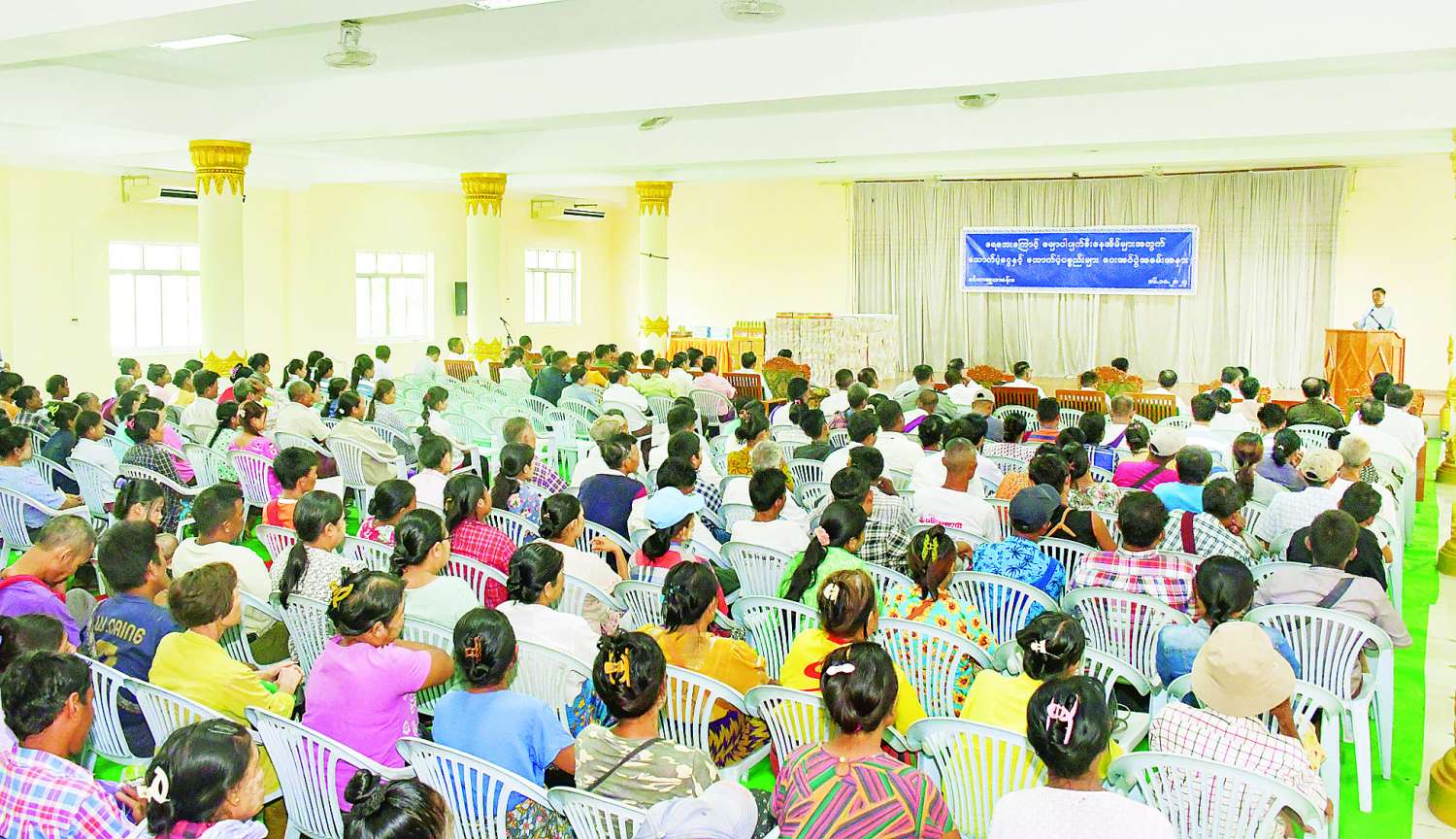 ရေဘေးသင့်အိမ်ထောင်စုများသို့ ထောက်ပံ့ငွေနှင့် ပစ္စည်းများပေးအပ်ပွဲအခမ်းအနားကို ယနေ့မွန်းလွဲပိုင်းက နေပြည်တော် ပျဉ်းမနားမြို့ မင်္ဂလာဗျူဟာခန်းမ၌ ကျင်းပပြုလုပ်ရာ လူမှုဝန်ထမ်း၊ ကယ်ဆယ်ရေးနှင့် ပြန်လည်နေရာချထားရေးဝန်ကြီးဌာန ပြည်ထောင်စုဝန်ကြီး ဒေါက်တာစိုးဝင်း၊ နေပြည်တော်ကောင်စီဥက္ကဋ္ဌ ဦးသန်းထွန်းဦး၊ နေပြည်တော်ကောင်စီဝင်များ တက်ရောက်ကြသည်။