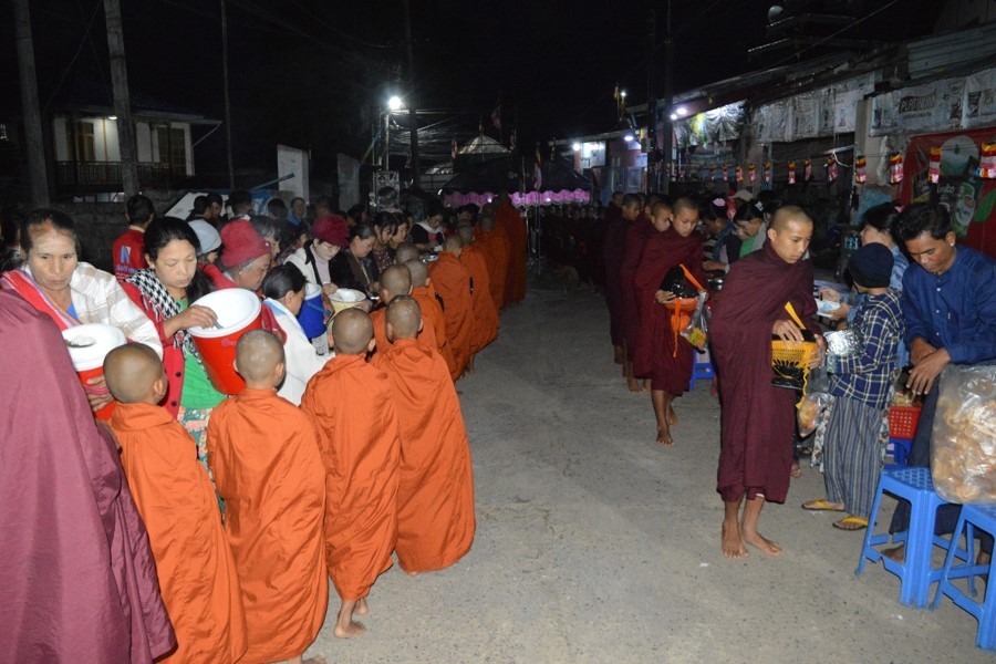 ယနေ့သည် ၁၃၈၆ ခုနှစ်၊ သီတင်းကျွတ်လပြည့်နေ့ အဘိဓမ္မာအခါတော်နေ့ဖြစ်သည်နှင့်အညီ တိုင်းဒေသကြီးနှင့်ပြည်နယ်အသီးသီး၌ သံဃာတော်များနှင့် သာသနာနွယ်ဝင်သီလရှင်များအား လှူဖွယ်ပစ္စည်းများ ဆက်ကပ်လှူဒါန်းခြင်း၊ အရုဏ်ဆွမ်း၊ နေ့ဆွမ်းများ ဆက်ကပ်လှူဒါန်းလောင်းလှူခြင်းများကို ပြုလုပ်ကြရာ တိုင်းဒေသကြီးနှင့်ပြည်နယ် ဝန်ကြီးချုပ်များ၊ တိုင်းစစ်ဌာနချုပ်အသီးသီးမှ တိုင်းမှူးများနှင့် အရာရှိ၊ စစ်သည်၊ မိသားစုဝင်များ၊ ဌာနဆိုင်ရာဝန်ထမ်းများနှင့် ဒေသခံပြည်သူများ တက်ရောက်ကြသည်။