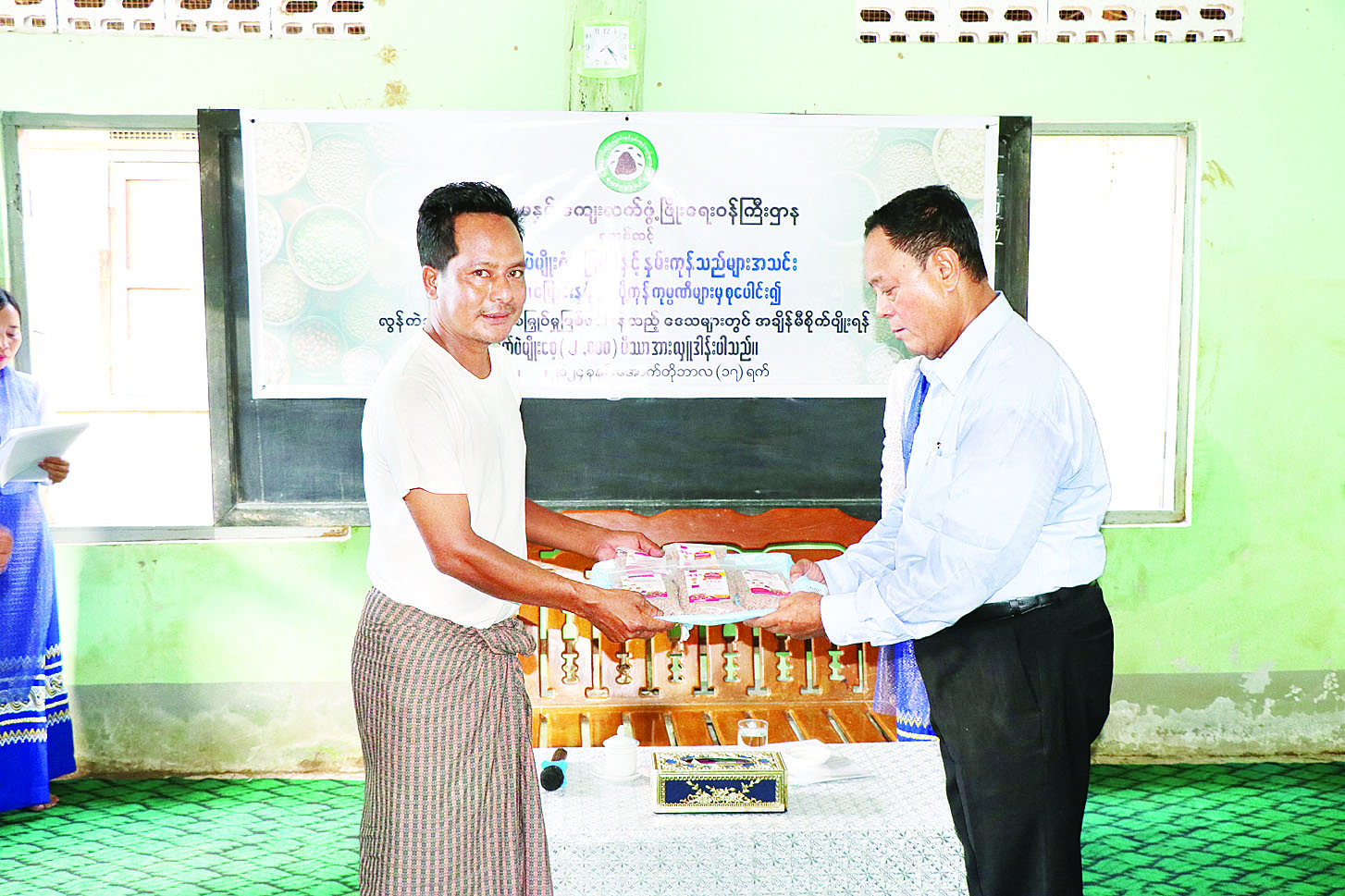 ဆက်လက်၍ အေးမြင့် သာယာကျေးရွာရှိ စိုက်ပျိုးရေးနှင့် အထွေထွေစီးပွားရေးလုပ်ငန်း သမဝါယမအသင်းမှအသင်းသား တောင်သူ ၆၆ ဦးနှင့် တွေ့ဆုံကာ အသင်းသားပိုင် စိုက်ပျိုးမြေဧက ၂၀၀တွင် ဆောင်းသီးနှံမတ်ပဲစိုက်ပျိုးရေး ညှိနှိုင်းဆွေးနွေးပြီး မြန်မာနိုင်ငံပဲမျိုးစုံ၊ ပြောင်းနှင့် နှမ်းကုန်သည်များအသင်းက လှူဒါန်းထားသည့် မတ်ပဲမျိုးပိဿာ ၂၀၀၀ ကို လည်းကောင်း၊ သမဝါယမဦးစီးဌာနက ကူညီထောက်ပံ့ပေးသည့် သွင်းအားစု ဓာတ်မြေဩဇာများကို လည်းကောင်း ပေးအပ်သည်။