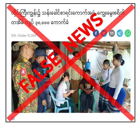 အဆိုပါသတင်းနှင့်ပတ်သက်၍ မြို့နယ်အုပ်ချုပ်ရေးဆိုင်ရာ တာဝန်ရှိသူတစ်ဦးအား မေးမြန်းရာတွင် ၂၀၂၄ ခုနှစ်၊ လူဦးရေနှင့်အိမ်အကြောင်းအရာသန်းခေါင်စာရင်းကို အမျိုးသားရေး တာဝန်တစ်ရပ်အနေဖြင့် အောင်မြင်အောင်အကောင်အထည်ဖော်ဆောင်ရွက်လျက်ရှိပြီး အောက်တိုဘာလ ၁ ရက်နေ့မှစတင်ကာ သက်ဆိုင်ရာတာဝန်ရှိအဖွဲ့များပူးပေါင်း၍ စတင်ကောက်ယူလျက်ရှိကြောင်း၊ ပြည်သူများမှ သန်းခေါင်စာရင်းကောက်ယူခြင်းလုပ်ငန်းစဉ်များကို တက်ကြွစွာပူးပေါင်းပါဝင် ဆောင်ရွက်လျက်ရှိရာ အကြမ်းဖက်အားပေး လူပုဂ္ဂိုလ်၊ အဖွဲ့များမှ မနာလို၊ မရှုစိမ့်ဖြင့် သန်းခေါင်စာရင်းကောက်ယူလျက်ရှိသော တာဝန်ရှိသူများကို ပြည်သူများက အထင်အမြင်လွဲမှားစေရန်ရည်ရွယ်ကာ မဟုတ်မမှန်သတင်းအမှားများကို လုပ်ကြံရေးသား ဖြန့်ဝေနေခြင်းသာဖြစ်ကြောင်း သိရှိရသည်။
