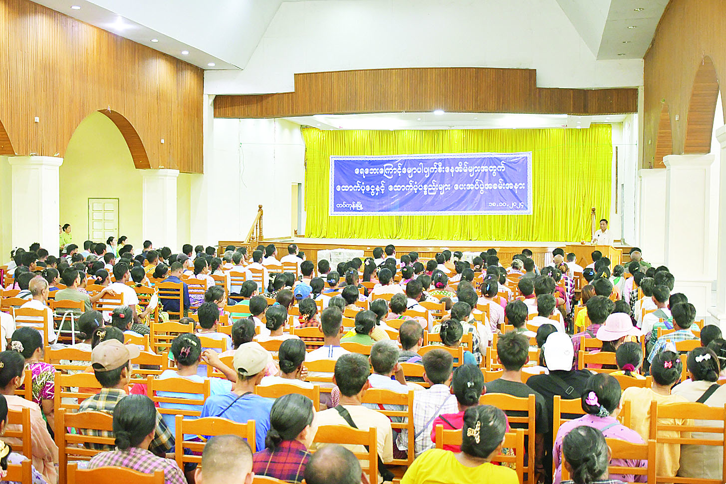 အမျိုးသားသဘာဝဘေးအန္တရာယ်ဆိုင်ရာ စီမံခန့်ခွဲမှုကော်မတီ ဒုတိယဥက္ကဋ္ဌ (၂)၊ လူမှုဝန်ထမ်း၊ ကယ်ဆယ်ရေးနှင့် ပြန်လည်နေရာချထားရေးဝန်ကြီးဌာန ပြည်ထောင်စုဝန်ကြီး ဒေါက်တာ စိုးဝင်းနှင့် နေပြည်တော်ကောင်စီဝင်များသည် ယနေ့နံနက်ပိုင်းတွင် နေပြည်တော်တပ်ကုန်းမြို့ အောင်ဆန်းခန်းမ၌ကျင်းပသည့် ရေဘေးသင့်အိမ်ထောင်စုများသို့ ထောက်ပံ့ငွေနှင့် ထောက်ပံ့ပစ္စည်းများ ပေးအပ်ပွဲအခမ်းအနားသို့ တက်ရောက်ကြသည်။