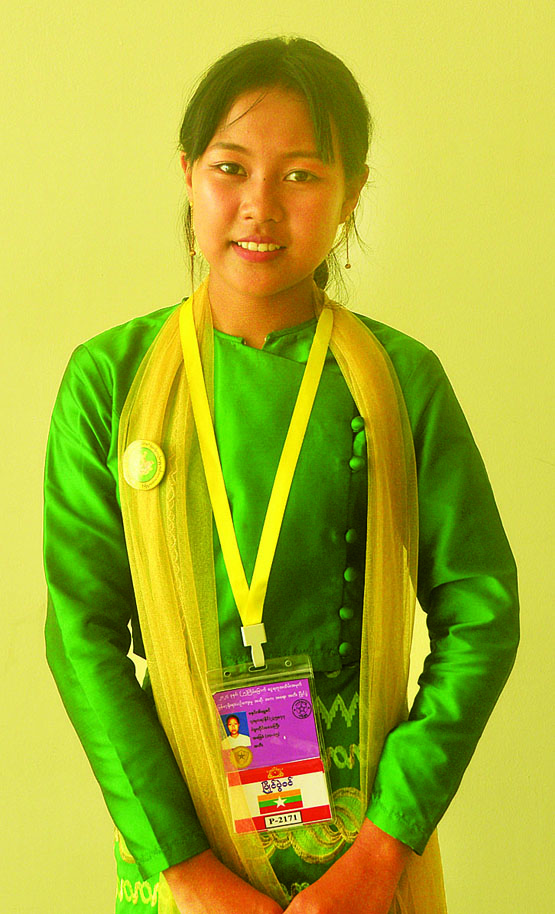 ကျွန်မက အမျိုးသားယဉ်ကျေးမှု အနုပညာတက္ကသိုလ်မှာ သဘင်ဘာသာ ကျောင်းသူအဖြစ် တက်ရောက်နေပါတယ်။ ရုပ်သေးကို တက္ကသိုလ်ပထမနှစ်မှာ စတင်သင်ယူခွင့်ရခဲ့ပါတယ်။ လူတစ်ယောက် ကပြနေသလိုခြေချိုး၊ လက်ချိုး၊ အဆစ်ချိုးတာလေးတွေ သူများတင်ဆက် တာကြည့်ရင်း ဝါသနာပါလာခဲ့တာပါ။ မနှစ်က ရုပ်သေးပြိုင်တာလူဦးရေနည်းတယ်လို့ သိရပြီး ကျွန်မတို့ပြိုင်တဲ့ အခုနှစ်မှာ လူတွေအများကြီး ပါဝင်ယှဉ်ပြိုင်ကြတော့ စိတ်လှုပ်ရှားမိပါတယ်။ အရှေ့ပြိုင်ပွဲ ဝင်တွေဆီကနေ အချို့ကလက်ချိုးလှတယ်။ အချို့က ခြေချိုးလှတယ်။ အဲဒါတွေကိုကြည့်ပြီး အသိပညာ တိုးပွားရပါတယ်။ ဇော်ဂျီကြိုးဆွဲရတာ အချို့ကခက်တယ်လို့ ပြောပေမယ့် ကျွန်မကတော့ ဇော်ဂျီရုပ်ကို အကြိုက်ဆုံးပါ။ ကျွန်မရဲ့အားနည်းချက်ကကြိုး သေချာမရွေးနိုင်ဘူး။ တော်တော်လေ့ကျင့်ခဲ့ရတယ်။ အဆို၊ အက၊ အရေး၊ အတီးပြိုင်ပွဲကြီးနားသွားတဲ့အချိန် ကတည်း ပြိုင်ချင်ခဲ့တာ။ အခုပြန်လည် ကျင်းပပြီး ပြိုင်ခွင့်ရတဲ့အတွက် နိုင်ငံတော်ကို ကျေးဇူးတင်ပါတယ်။ ကျွန်မက ကျောင်းပြီးသွားရင် ရုပ်သေးဆရာမ တစ်ယောက်ဖြစ်ချင်တာပါရှင့်။