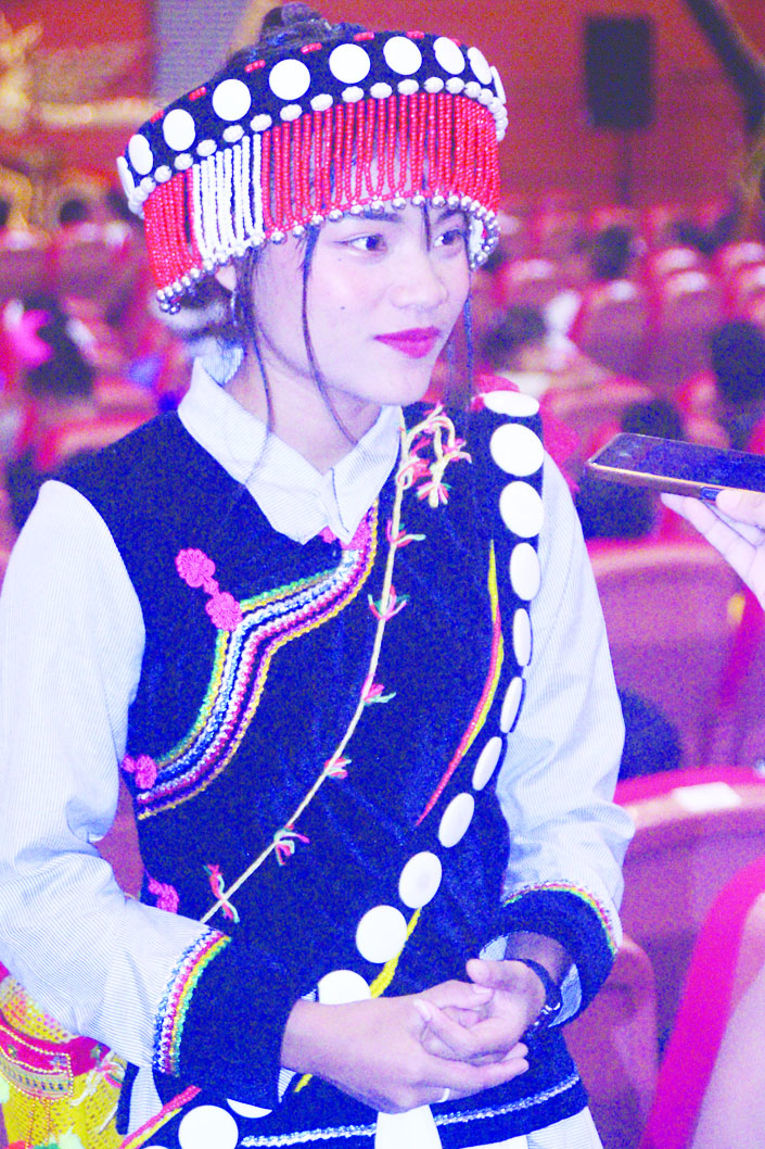 ကျွန်မတို့က ကချင်တိုင်းရင်းသား ခြောက်မျိုးထဲက လီဆူဝတ်စုံနဲ့ ဖျော်ဖြေတင်ဆက်ခဲ့ပါတယ်။ ကျွန်မက ကချင်လူမျိုးဖြစ်ပြီး မြစ်ကြီးနား အ.ထ.က ၂ က Grade 12 ကျောင်းသူ ဖြစ်ပါတယ်။ ပထမဆုံးအကြိမ် နေပြည်တော်ကို လာခွင့်ရတာ၊ ပြိုင်ပွဲကြီးမှာ ယှဉ်ပြိုင်ခွင့်ရတာ၊ ကျွန်မတို့ရိုးရာဝတ်စုံနဲ့ ဖျော်ဖြေကပြခွင့်ရတာ သိပ်ကိုပျော်ရွှင် ကြည်နူးရပါတယ်။ ဒီလို ခမ်းနား ကြီးကျယ်တဲ့ ပြိုင်ပွဲကြီးမှာ တိုင်းရင်းသား ရိုးရာဂီတနဲ့အကကို ဖော်ထုတ်ခွင့်ပေးလို့ ကျေးဇူးတင်ပါတယ်ရှင့်။ ကချင်အက ကလွယ်ကူပြီး ကျန်းမာရေးကောင်းစေပါတယ်။ တိုင်းရင်းသားညီအစ်ကို မောင်နှမအားလုံးကို ခုန်ပေါက်ကခုန်ရတဲ့ ကချင်အကတွေကို ကတတ်စေချင်ပါတယ်။