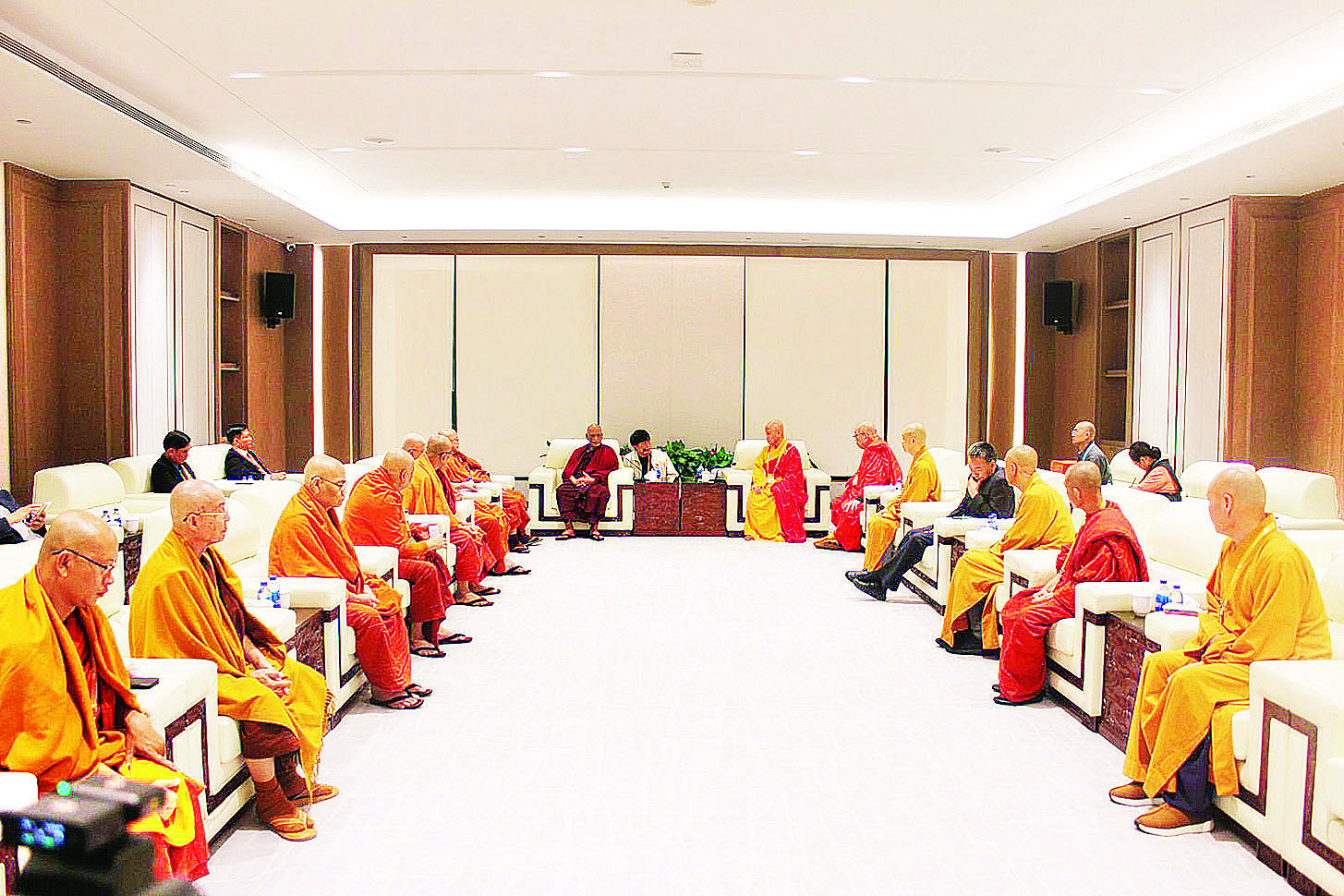 အဆိုပါ တွေ့ဆုံပွဲတွင် The Buddhist Association of China ဥက္ကဋ္ဌဆရာတော် Yan Jue က နောင်တွင် မြန်မာနိုင်ငံနှင့် တရုတ်နိုင်ငံအကြား ဗုဒ္ဓဘာသာဆိုင်ရာ ဆွေးနွေးပွဲများ ကောင်းမွန်စွာ ကျင်းပနိုင်ရေး စီစဉ်သွားမည်ဖြစ်ကြောင်း၊ ယခု ဗုဒ္ဓဘာသာဖိုရမ်သို့ ကြွရောက်လာသော ဥက္ကဋ္ဌဆရာတော်ကြီးနှင့် အဖွဲ့ဝင်ဆရာတော်များအားလုံး စိတ်ချမ်းသာ၊ ကိုယ်ကျန်းမာပြီး အတွေ့အကြုံကောင်းများ ပြည့်ပြည့်ဝဝရယူနိုင်ကြပါစေကြောင်း ဆွေးနွေးပြောကြားခဲ့ပြီး နိုင်ငံတော်သံဃမဟာနာယကအဖွဲ့ဥက္ကဋ္ဌ ဆရာတော်ဒေါက်တာဘဒ္ဒန္တစန္ဒိမာဘိဝံသက တရုတ်နိုင်ငံတွင် ယခုလိုဗုဒ္ဓဘာသာနှင့် ပတ်သက်သော အစည်းအဝေးကြီးအား ဗုဒ္ဓဘာသာဝင်ပုဂ္ဂိုလ်များ စုပေါင်းပြီး ညီညီညွတ်ညွတ်ပြုလုပ်ခြင်းသည် မိမိတို့ဗုဒ္ဓဘာသာအတွက် တိုးတက်ကြီးပွားကြောင်းဖြစ်သည့် အကြောင်းတရား တစ်ခုဖြစ်ကြောင်း၊ အခါအခွင့်သင့်ပါက တရုတ်နိုင်ငံမှ စွယ်တော်မြတ်အား မြန်မာနိုင်ငံသို့ ပင့်ဆောင်လိုပါကြောင်း ဆွေးနွေးလျှောက်ထားသည်။