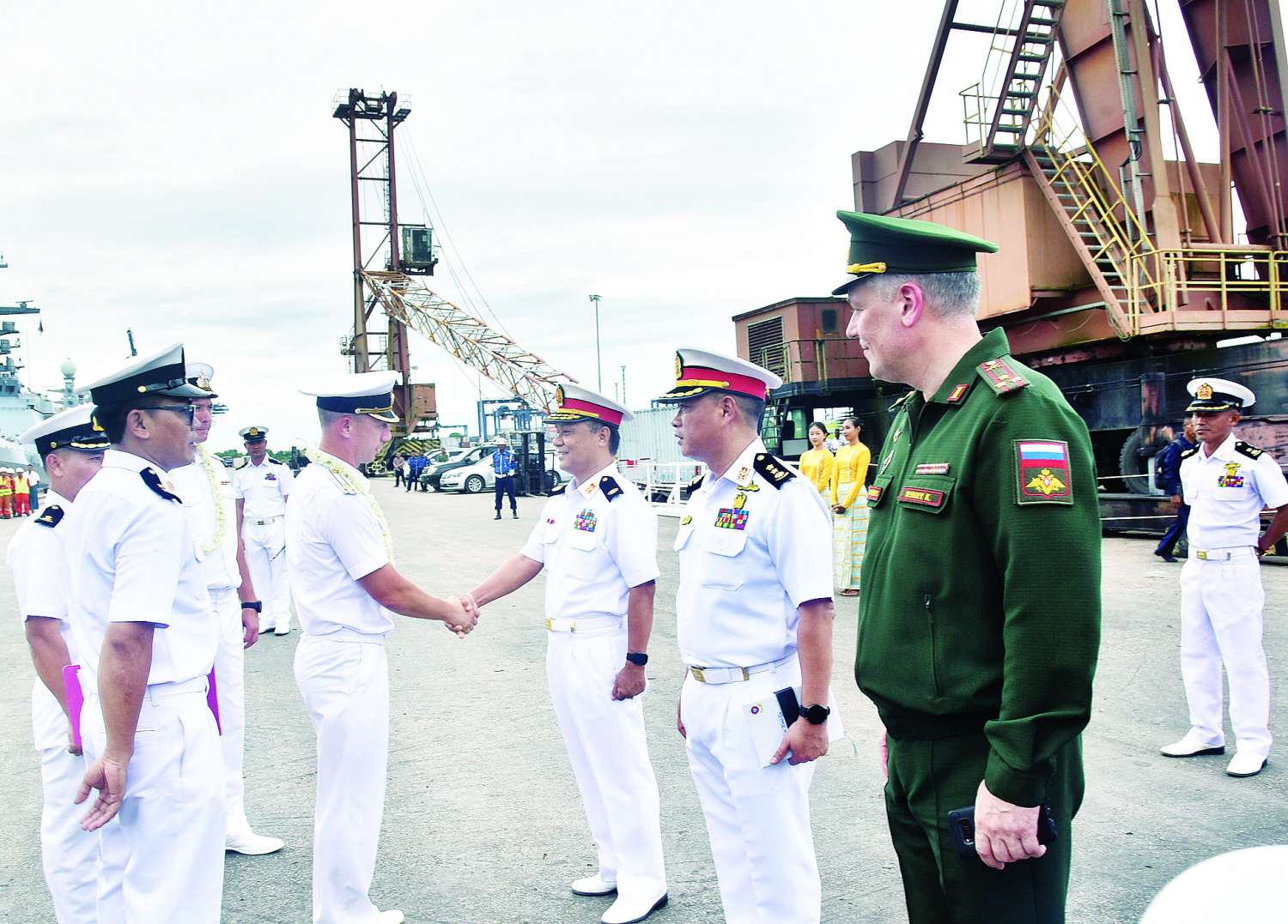 ရုရှားရေတပ် Russian Pacific Fleet မှ ကော်ဗက်စစ်ရေယာဉ်များဖြစ်ကြသည့် စစ်ရေယာဉ် Gromky ၊ စစ်ရေယာဉ် Rezky နှင့် စစ်ရေယာဉ် Tsydenzhapov ၊ ထောက်ပံ့ရေးရေယာဉ် Pechenga တို့သည် ပြည်ထောင်စုသမ္မတမြန်မာနိုင်ငံတော်သို့ ဒုတိယအကြိမ် မြန်မာ-ရုရှား နှစ်နိုင်ငံရေကြောင်းလုံခြုံရေးဆိုင်ရာ လေ့ကျင့်ခန်းဆောင်ရွက်ရန်နှင့် ချစ်ကြည်ရေးခရီးလည်ပတ်ရန်အတွက် ယနေ့ နေ့လယ်ပိုင်းတွင် ရန်ကုန်မြို့၊ သီလဝါဆိပ်ကမ်းသို့ ရောက်ရှိလာရာ တပ်မတော် (ရေ) မှ အရာရှိကြီးများ၊ အရာရှိ၊ စစ်သည်များ၊ မြန်မာနိုင်ငံဆိုင်ရာရုရှားစစ်သံမှူးနှင့် တာဝန်ရှိသူများက ကြိုဆိုနှုတ်ဆက်ကြသည်။