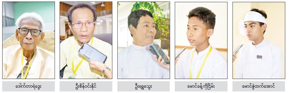 (၂၅)ကြိမ်မြောက် ငွေရတုအထိမ်းအမှတ် မြန်မာ့ရိုးရာယဉ်ကျေးမှု အဆို၊ အက၊ အရေး၊ အတီးပြိုင်ပွဲကြီး၏ သတ္တမမြောက်နေ့အဖြစ် ပြည်ထောင်စုနယ်မြေ အတွင်းရှိ သတ်မှတ်နေရာ အသီးသီးတွင် ဆက်လက်ကျင်းပလျက်ရှိရာ ပြိုင်ပွဲတွင် တာဝန်ယူကြရသည့် တိုင်းဒေသကြီးနှင့် ပြည်နယ်များမှ အကဲဖြတ်ပညာရှင်များနှင့် ပြိုင်ပွဲဝင်များအား တွေ့ဆုံမေးမြန်းထားသည်များကို ပြန်လည်ဖော်ပြပေးလိုက်ရပါသည်-