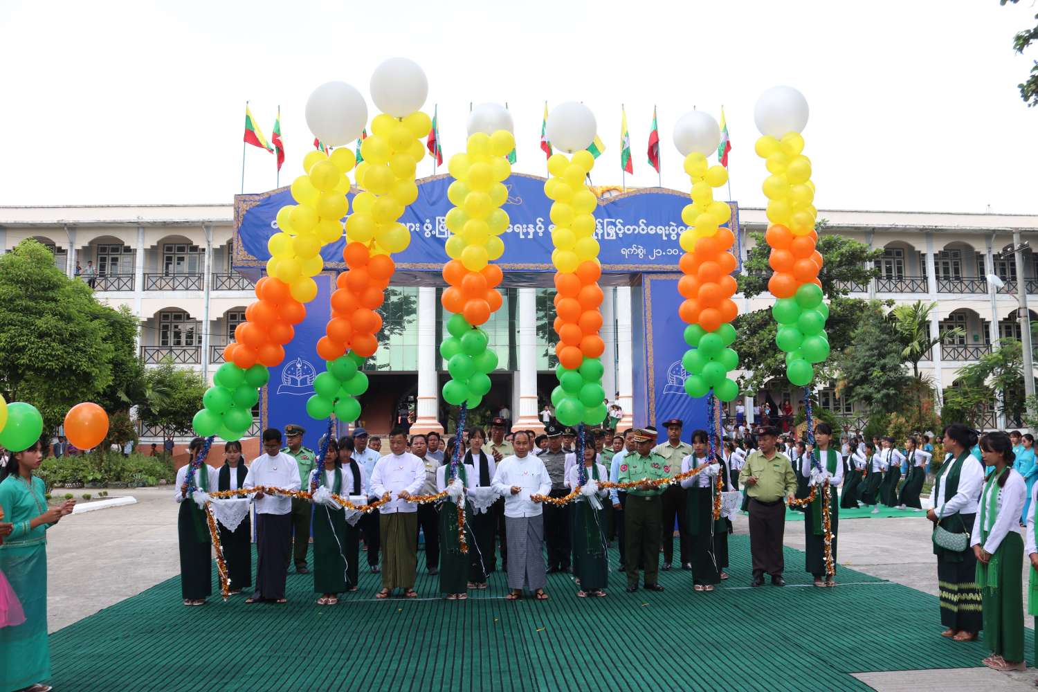 ဦးစွာ တိုင်းဒေသကြီးဝန်ကြီးချုပ် ဦးမြတ်ကျော်၊ လူမှုရေးဝန်ကြီးဦးညွန့်ဝင်းအောင်၊ လမ်းပန်းဆက်သွယ်ရေးဝန်ကြီး ဦးခင်မောင်အေး၊ ဒေသကွပ်ကဲမှုစစ်ဌာနချုပ်(ကလေး)မှ ဗိုလ်မှူးချုပ်အောင်နိုင်ဦးနှင့် ခရိုင်စီမံအုပ်ချုပ်ရေးအဖွဲ့ဥက္ကဋ္ဌ ဦးကျော်စိုးတင့်တို့က ကျောင်းစာကြည့်တိုက်များ ဖွံ့ဖြိုးတိုးတက်ရေးနှင့် စာဖတ်ရှိန်မြှင့်တင်ရေးပွဲတော်အား ဖဲကြိုးဖြတ်ဖွင့်လှစ်ပေးကြပြီး တိုင်းဒေသကြီးဝန်ကြီးချုပ်နှင့် တာဝန်ရှိသူများက ဘင်ခရာ/ ပန်းပွားအဖွဲ့တို့အား ဂုဏ်ပြုချီးမြှင့်ငွေများ ပေးအပ်ချီးမြှင့်ကြပြီး မုဒ်ဦးရှေ့တွင် စုပေါင်းမှတ်တမ်း ဓါတ်ပုံရိုက်ကူးကြသည်။