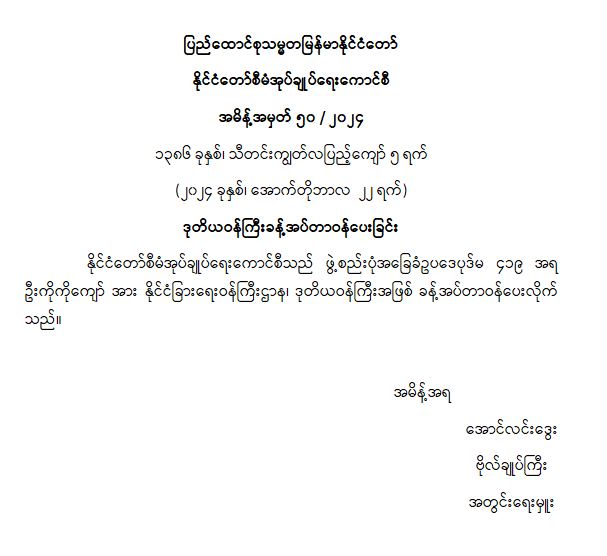 နိုင်ငံတော်အစိုးရ၏ ကြေညာချက်များ