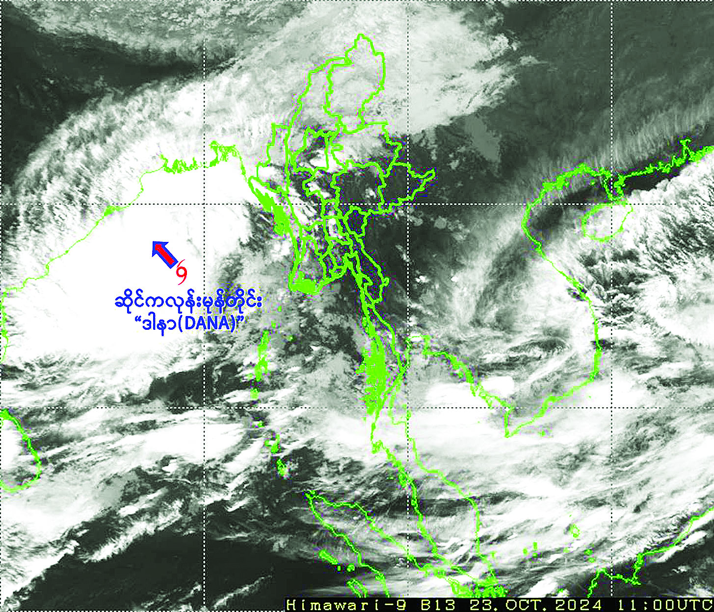 ဆိုင်ကလုန်းမုန်တိုင်း “ဒါနာ” ၏ လက်ရှိအခြေအနေမှာ မြန်မာနိုင်ငံဘက်သို့ ဦးတည်ရွေ့လျားမည့် အခြေအနေမရှိသဖြင့် အဝါရောင်အဆင့်ဟု သတ်မှတ်ပါသည်။