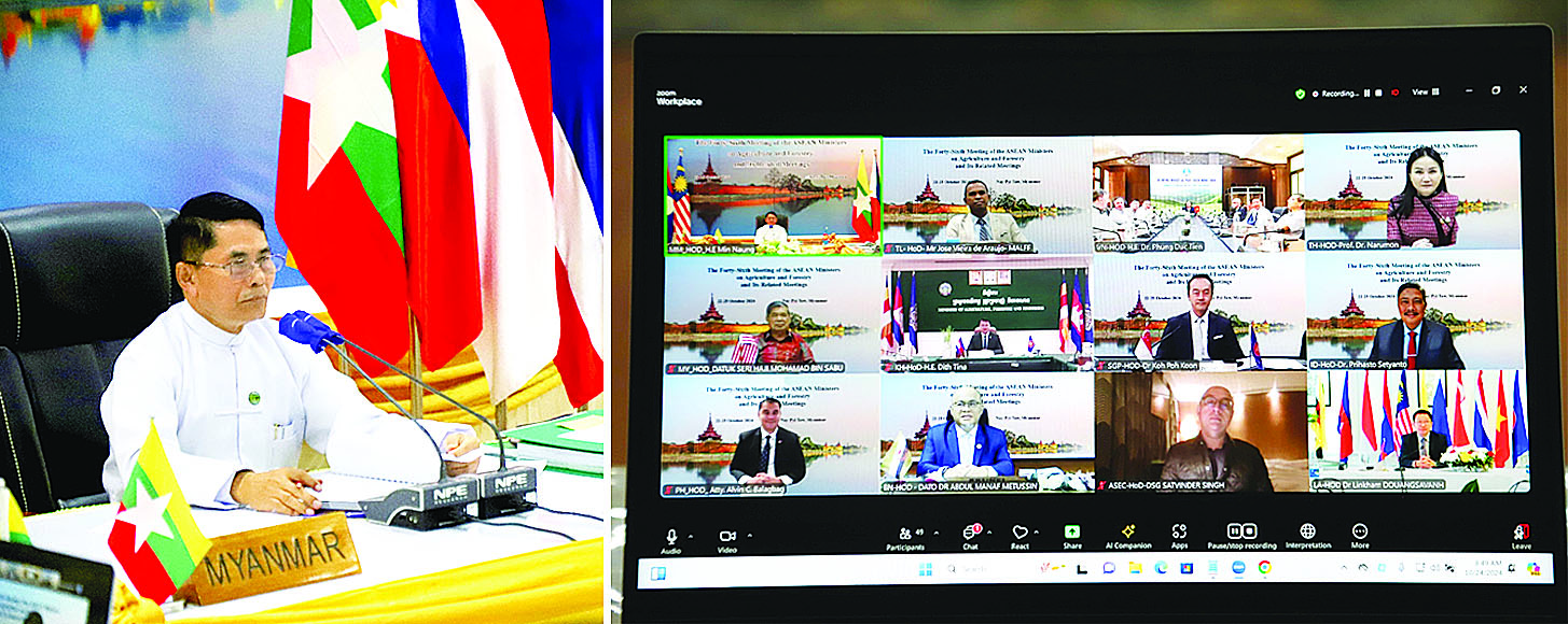 မြန်မာနိုင်ငံက အိမ်ရှင်နိုင်ငံအဖြစ် လက်ခံကျင်းပလျက်ရှိသည့် (၄၆) ကြိမ်မြောက် အာဆီယံ လယ်ယာစိုက်ပျိုးရေးနှင့် သစ်တောဆိုင်ရာဝန်ကြီးများ အစည်းအဝေးနှင့် ဆက်စပ်အစည်းအဝေးများကို အောက်တိုဘာ ၂၂ ရက်မှ ၂၅ ရက်အထိ အွန်လိုင်းစနစ်ဖြင့် ကျင်းပလျက်ရှိသည်။