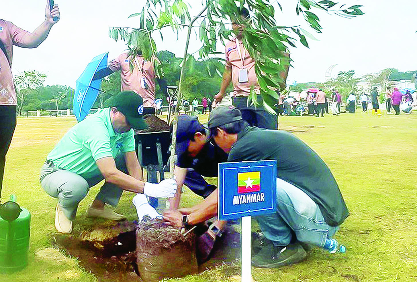 ပြည်ထောင်စုဝန်ကြီးသည် ယမန်နေ့နံနက်ပိုင်းက အပြည်ပြည်ဆိုင်ရာသဘာဝဘေးအန္တရာယ် ထိခိုက်ဆုံးရှုံးနိုင်ခြေလျှော့ချရေးနေ့အခမ်းအနားသို့ တက်ရောက်ပြီး အထိမ်းအမှတ်သစ်ပင်စိုက်ပျိုးမည့် ဘန်ဒါဆရီဘီဂါဝမ်မြို့နှင့် Taman Mahkota Jubli Emas ဥယျာဉ်တို့သို့ သွားရောက်ပြီး အစည်းအဝေးသို့ တက်ရောက်လာကြသည့် ဝန်ကြီးများနှင့်အတူ သတ်မှတ်နေရာတွင် ကံ့ကော်ပင်ကို စိုက်ပျိုးပေးသည်။