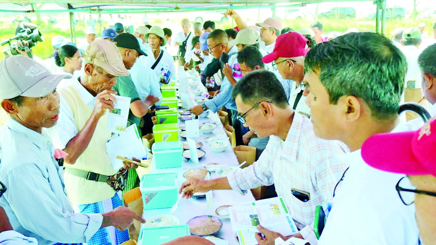 ရှင်းလင်းပြသမှုများကို တောင်သူများက စိတ်ပါဝင်စားစွာ လေ့လာကြပြီး စားသုံးမှုအရည်အသွေးအကဲဖြတ်ရန် ပြသထားသည့် ရွှေအာဆီယံ၊ ဝိုင်အေအာရ်-၁၄၊ ဝိုင်အေအာရ်-၀၇၊ ဝိုင်ကေကျူအာရ် - ၀၃၊ ဝိုင်ဘီအက်စ်အာရ် - ၁၀၊ ဝိုင်ကျူအာရ် - ၁၁၊ ဝိုင်ကေ ကျူအာရ်-၀၁၊ ဝိုင်အက်စ်အာရ် - ၁၊ ဝိုင်အာရ်အာရ် - ၁၂၊ ဝိုင်အိုင်အာရ် - ၁၄ မျိုးတို့ကို ဝိုင်းဝန်းအကဲဖြတ်ကြပြီး တောင်သူများ မှတ်မိလွယ်သော မျိုးအမည်များ သတ်မှတ်ပေးနိုင်ရေး အကြံပြုကြသည်။