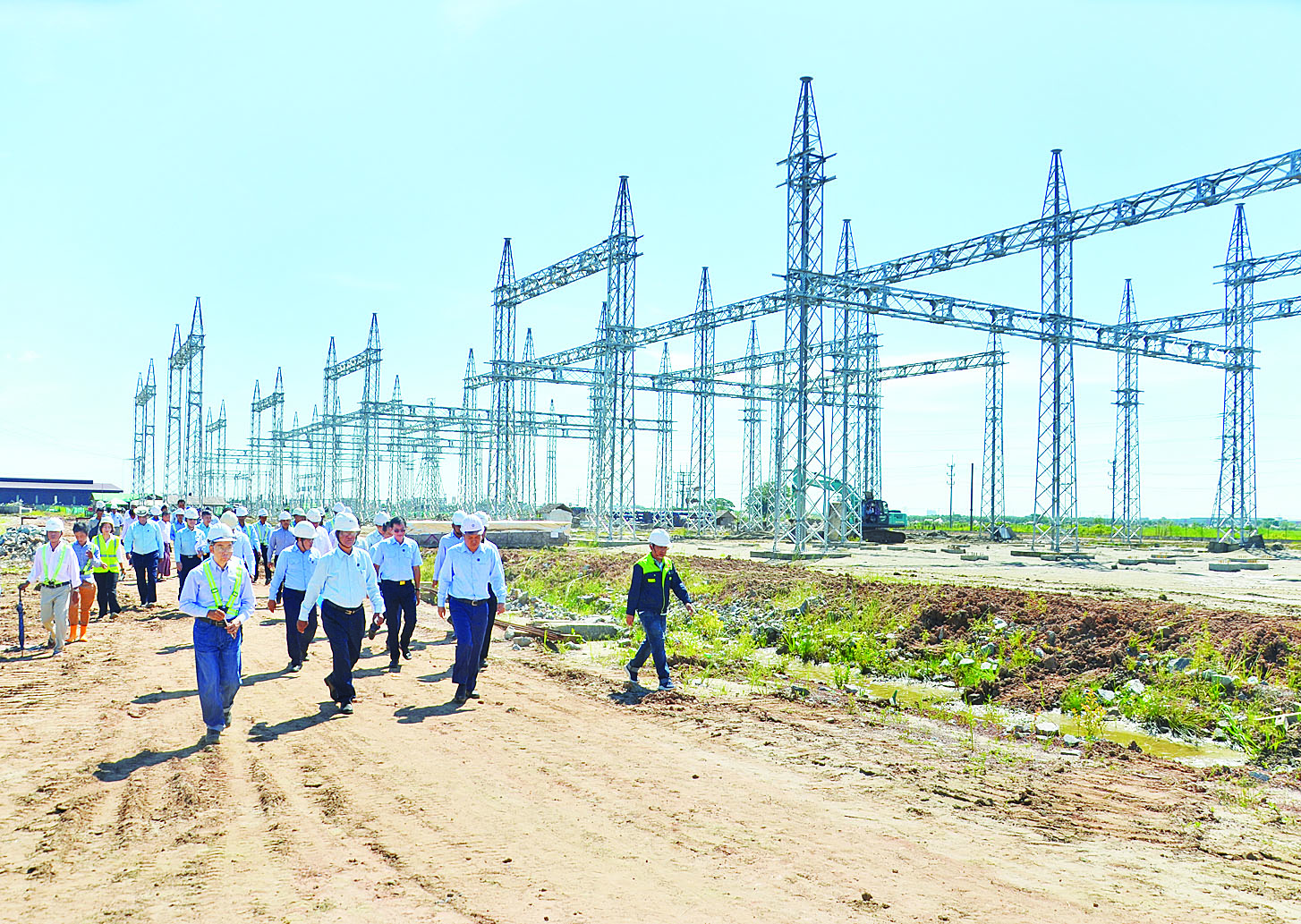 တင်ပြချက်များအပေါ် ပြည်ထောင်စုဝန်ကြီးက လျှပ်စစ်ဓာတ်အား အမြန်ပို့လွှတ်နိုင်ရေး ဦးစားပေးလုပ်ငန်းအလိုက်ခွဲခြားပြီး ဆောင်ရွက်ရန်၊ လူအင်အား၊ ယန္တရားနှင့် စက်အင်အားများ တိုးချဲ့ပြီးအဆိုင်းစနစ်ဖြင့် ဆောင်ရွက်ရန်၊ လုပ်ငန်းခွင်ဘေးအန္တရာယ်ကင်းရှင်းရေး၊ လုံခြုံရေးသတိ၊ အသိ အမြဲရှိစေရေး၊ လုပ်ငန်းခွင်သုံးပစ္စည်းများ စနစ်တကျအသုံးပြုစေရေး၊ စီမံကိန်းတွင် တပ်ဆင်အသုံးပြုမည့် စက်ပစ္စည်းများ အရည်အသွေးစံချိန်စံညွှန်း ပြည့်မီရေးနှင့် ဘဏ္ဍာငွေများ လေလွင့်ဆုံးရှုံးမှုမရှိစေရေး အထူးအလေးထား ဆောင်ရွက်သွားကြရန်မှာကြားပြီး လိုအပ်သည်များ ဖြည့်ဆည်းဆောင်ရွက်ပေးကာ စီမံကိန်းလုပ်ငန်းခွင်အတွင်း Control Building နှင့် Switch Yard တည်ဆောက်ခြင်းလုပ်ငန်းများ ဆောင်ရွက်နေမှု၊ ထရန်စဖော်မာများ၊ Shunt Reactor တပ်ဆင်နေမှုနှင့် Hybrid Gas Insulated Switchgear (HGIS) တပ်ဆင်နေမှုတို့ကို လှည့်လည်ကြည့်ရှုစစ်ဆေးသည်။