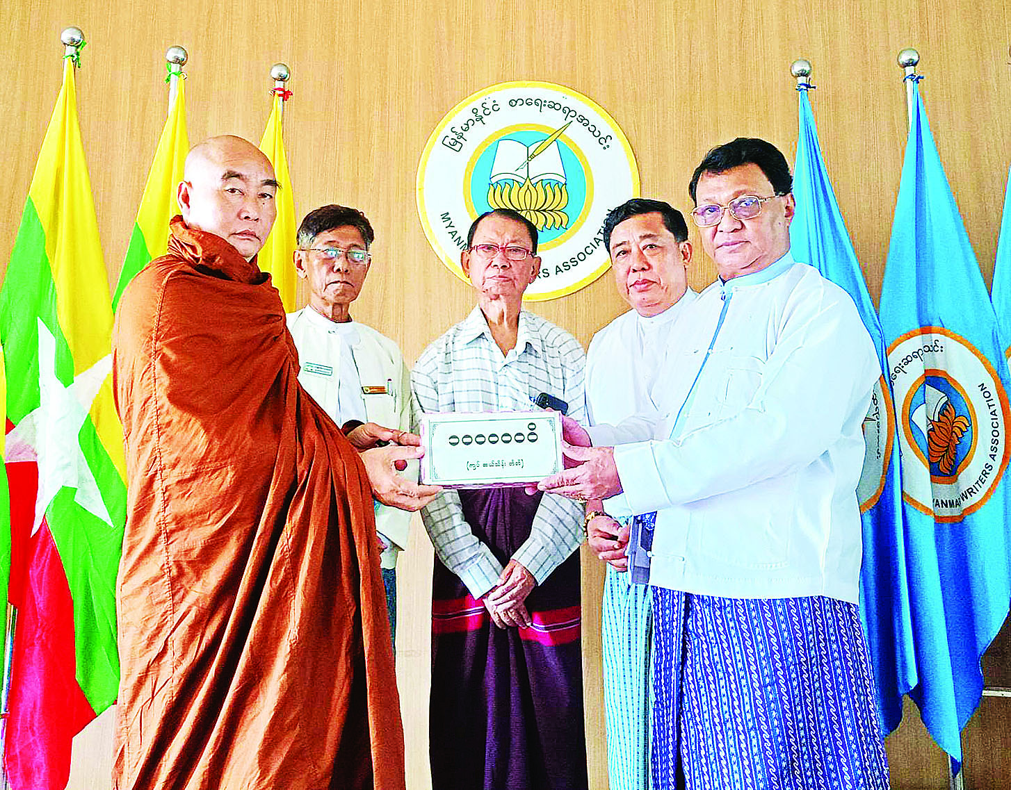 အလှူငွေဖြစ်စေ၊ အလှူပစ္စည်းဖြစ်စေ လှူဒါန်းလိုပါက မြန်မာနိုင်ငံစာရေးဆရာအသင်း၊ အမှတ် ၁၇၃/၁၇၅ ပန်းဆိုးတန်းလမ်း (အလယ်) ကျောက်တံတားမြို့နယ်၊ ရန်ကုန်မြို့၊ ဖုန်း-ဝ၁-၂၅၂၄၁၇၊ ၀၉-၄၅၀၀၉၀၄၈၆ တို့သို့ ဆက်သွယ်လှူဒါန်းနိုင်ကြောင်း သိရသည်။