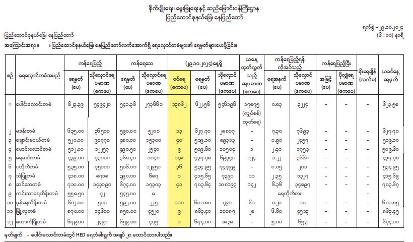 စိုက်ပျိုးရေး၊ မွေးမြူရေးနှင့် ဆည်မြောင်းဝန်ကြီးဌာန ဆည်မြောင်းနှင့်ရေအသုံးချမှုစီမံခန့်ခွဲရေးဦးစီးဌာနက ပြည်ထောင်စုနယ်မြေ နေပြည်တော်တွင် ထိန်းသိမ်းထားသော ရေလှောင်တမံနှင့် ရေထိန်းတမံ စုစုပေါင်း ၁၂ ခုရှိရာ အောက်တိုဘာ ၂၉ ရက်၌ ပေါင်းလောင်းရေလှောင်တမံတွင် HED ရေတံခါး အချပ် ၂၀ ထောင်ထားသည်။