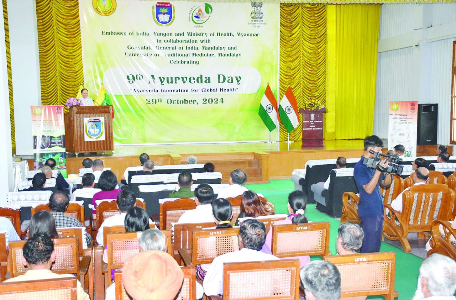 မြန်မာနိုင်ငံနှင့် အိန္ဒိယနိုင်ငံတို့သည် ရှေးယခင်ကတည်းက ကျန်းမာရေးကဏ္ဍတွင် ပူးပေါင်းဆောင်ရွက်မှုများရှိခဲ့ပြီး ကျန်းမာရေးစောင့်ရှောက်မှု၊ သုတေသနလုပ်ငန်းများဆောင်ရွက်မှုနှင့် ကျန်းမာရေးဆိုင်ရာ စွမ်းဆောင်ရည်မြှင့်တင်ရေးလုပ်ငန်းများတွင် နှစ်နိုင်ငံ ပူးပေါင်းဆောင်ရွက်ခဲ့ကြောင်း၊ ယခုနှစ် အာယုဗေဒနေ့အထိမ်းအမှတ်ဆောင်ပုဒ်ဖြစ်သည့် “Ayurvedic Innovation for Global Health” သည် အာယုဗေဒပညာရပ်၏ ကျန်းမာရေးကဏ္ဍတွင် အရေးပါမှုအား မီးမောင်းထိုးပြလျက်ရှိပြီး အာယုဗေဒပညာရပ်၏ အခြေခံနိယာမများဖြစ်သည့် အစားအသောက်ဂရုစိုက်ခြင်း၊ ရေဓာတ်လုံလောက်စွာ ရရှိရန်ဂရုပြုခြင်း၊ ပတ်ဝန်းကျင်နှင့် သဟဇာတဖြစ်အောင် နေထိုင်ခြင်းအစရှိသည့် မိမိကျန်းမာရေးအား အလုံးစုံခြုံငုံအလေးထားခြင်းကို တစ်ကမ္ဘာလုံး သတိပြုမိစေရန်ဖြစ်ကြောင်း ပြောကြားသည်။