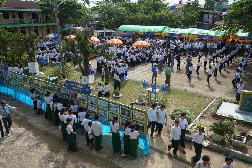 ဆက်လက်၍ ပြည်နယ်ဝန်ကြီးချုပ်နှင့်အဖွဲ့သည် ကျောင်းစာကြည့်တိုက်၊ စာအုပ်ပြပွဲ၊ ပုံပြင်/ကဗျာ/ကျပန်း/စကားရည်လုပြိုင်ပွဲများ၊ ပျော်ရွယ်ဖွယ်ကစားပွဲများနှင့် လှပသာ ယာပြည်မြန်မာ ရောင်စုံဓာတ်ပုံပြခန်း၊ ပညာရေး၊ကျန်းမာရေး၊ မီးသတ်ဦးစီးဌာန၊ ရက်ကန်းနှင့်အသက်မွေးပညာသင်တန်းကျောင်း၊ သဘာဝပတ်ဝန်းကျင်ထိန်းသိမ်း ရေးဦးစီးဌာနတို့၏ ပြခန်းများ၊ စာအုပ်အရောင်းဆိုင်များ၊ Physical Fitness Dance နှင့် မြန်မာ့သိုင်း သရုပ်ပြသမှုတို့ကို လှည့်လည်ကြည့်ရှုအားပေး၍ ဂုဏ်ပြုဆုများ ကျောင်းသား/သူများအား ပေးအပ်ချီးမြှင့်သည်။