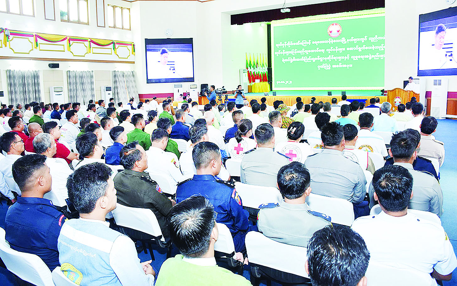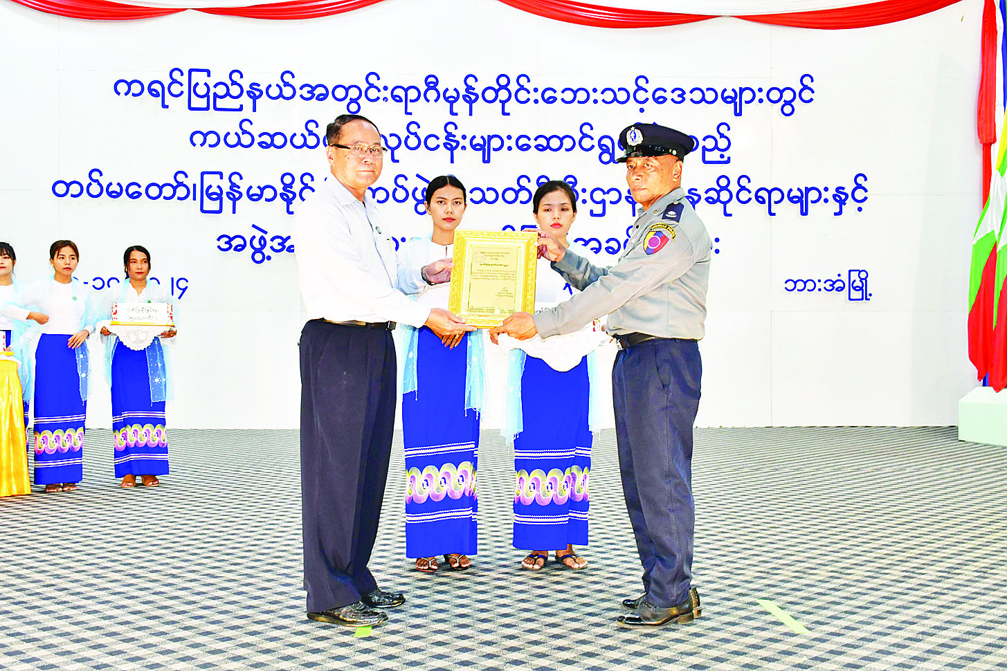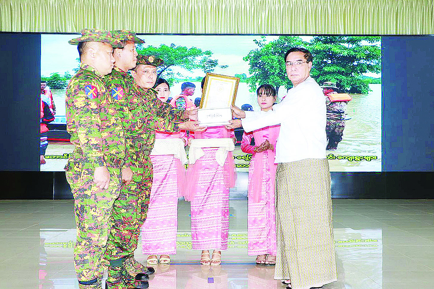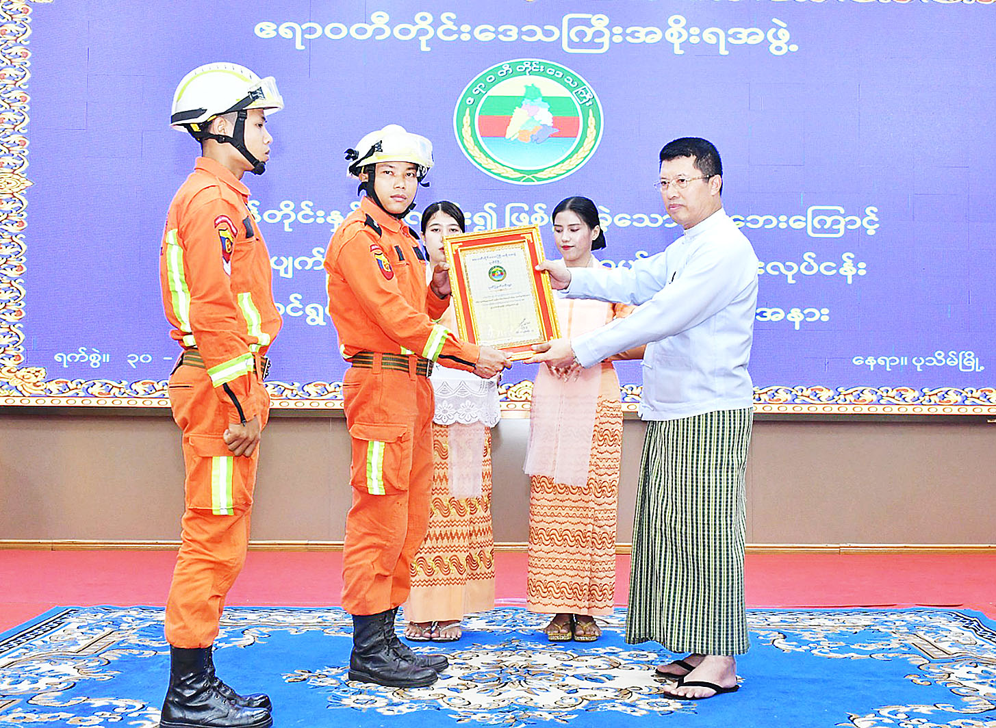 ၂၀၂၄ ခုနှစ် စက်တင်ဘာလအတွင်း ဖြစ်ပွားခဲ့သော တိုင်ဖွန်းမုန်တိုင်း(ရာဂီ)ဒဏ်ကြောင့် ရေဘေးသင့်ခဲ့သည့် မြို့နယ်များတွင် ကယ်ဆယ်ရေးလုပ်ငန်းများ၊ ပြန်လည်ထူထောင်ရေးလုပ်ငန်းများ ဆောင်ရွက်ခဲ့သူများအား ဂုဏ်ပြုချီးမြှင့်ပွဲအခမ်းအနားများကို အောက်တိုဘာ ၃၀ ရက်က နေပြည်တော်ကောင်စီနယ်မြေ၊ ကရင်ပြည်နယ်၊ ကယားပြည်နယ်၊ ရှမ်းပြည်နယ်၊ မန္တလေးတိုင်းဒေသကြီး၊ ပဲခူးတိုင်းဒေသကြီး၊ ရန်ကုန်တိုင်းဒေသကြီးနှင့် ဧရာဝတီတိုင်းဒေသကြီးတို့တွင် ကျင်းပခဲ့သည်။