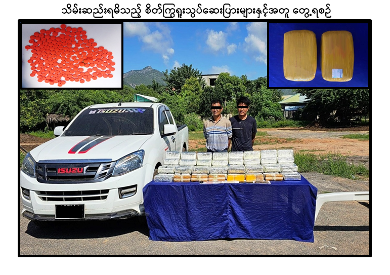 မူးယစ်ဆေးဝါးတားဆီးနှိမ်နင်းရေးရဲတပ်ဖွဲ့မှ တပ်ဖွဲ့ဝင်များပါဝင်သော ပူးပေါင်းအဖွဲ့သည် အောက်တိုဘာလ ၂၇ ရက်နေ့ ညနေ ၄ နာရီအချိန် မန္တလေးတိုင်းဒေသကြီး၊ ကျောက်ဆည်မြို့နယ်၊ သံရွာကျေးရွာအနီးတွင် တောင်ကြီးမှ ကျောက်ဆည်ဘက်သို့ ကိုကိုမောင် (ခ) ချမ်းပြည့်မောင် မောင်းနှင်ပြီး တင်ကို လိုက်ပါလာသည့် ISUZU D-MAX မော်တော်ယာဉ်ကို သတင်းအရရှာဖွေရာ ယာဉ်ပေါ်မှ ဒေသကာလတန်ဖိုးငွေကျပ် ၁ ဒသမ ၃၂ ဘီလီယံတန်ဖိုးရှိ စိတ်ကြွရူးသွပ်ဆေးပြား ၈ ဒသမ ၈ သိန်း ဖမ်းဆီးရမိခဲ့ပြီး စစ်ဆေးဖော်ထုတ်ချက်အရ ဖမ်းဆီးရမိ စိတ်ကြွရူးသွပ်ဆေးပြားများအား ရှမ်းပြည်နယ် (တောင်ပိုင်း) မှ ကရင်ပြည်နယ်၊ ဘုရားသုံးဆူမြို့သို့ သယ်ဆောင်ရောင်းဝယ်ခြင်းဖြစ်ကြောင်း သိရှိရသဖြင့် ၎င်းတို့အား ဥပဒေအရအရေးယူထားရှိပြီး ကွင်းဆက်ပြစ်မှုကျူးလွန်သူများအား စစ်ဆေးဖော်ထုတ်လျက်ရှိကြောင်း မြန်မာနိုင်ငံရဲတပ်ဖွဲ့မှ သတင်းရရှိသည်။