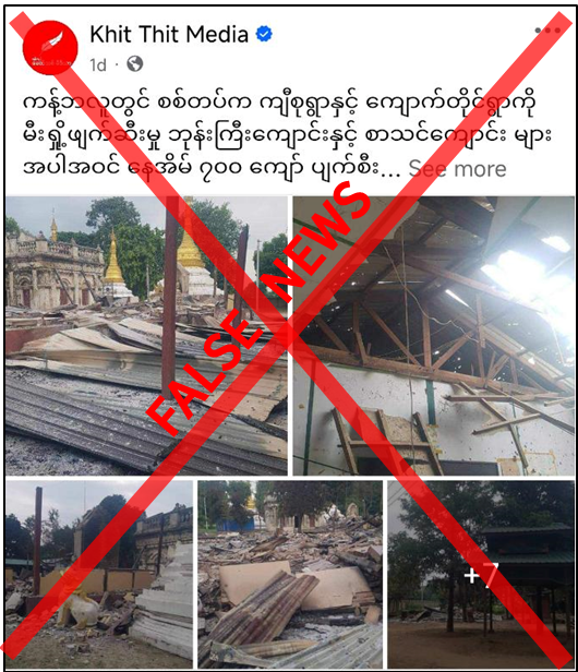 ကန့်ဘလူမြို့နယ်အတွင်းရှိ ကျေးရွာအချို့၌ လုံခြုံရေးတပ်ဖွဲ့ဝင်များက ဘုန်းတော်ကြီးကျောင်းများ၊ စာသင်ကျောင်းများနှင့် နေအိမ်များအား မီးရှို့ဖျက်ဆီးခဲ့ပြီး ဒေသခံပြည်သူများအား ဖမ်းဆီးခေါ်ဆောင်သွားကြောင်း ပြည်ဖျက်မီဒီယာများက မဟုတ်မမှန်လုပ်ကြံရေးသားဝါဒဖြန့်ဝေလျက်ရှိသည်။